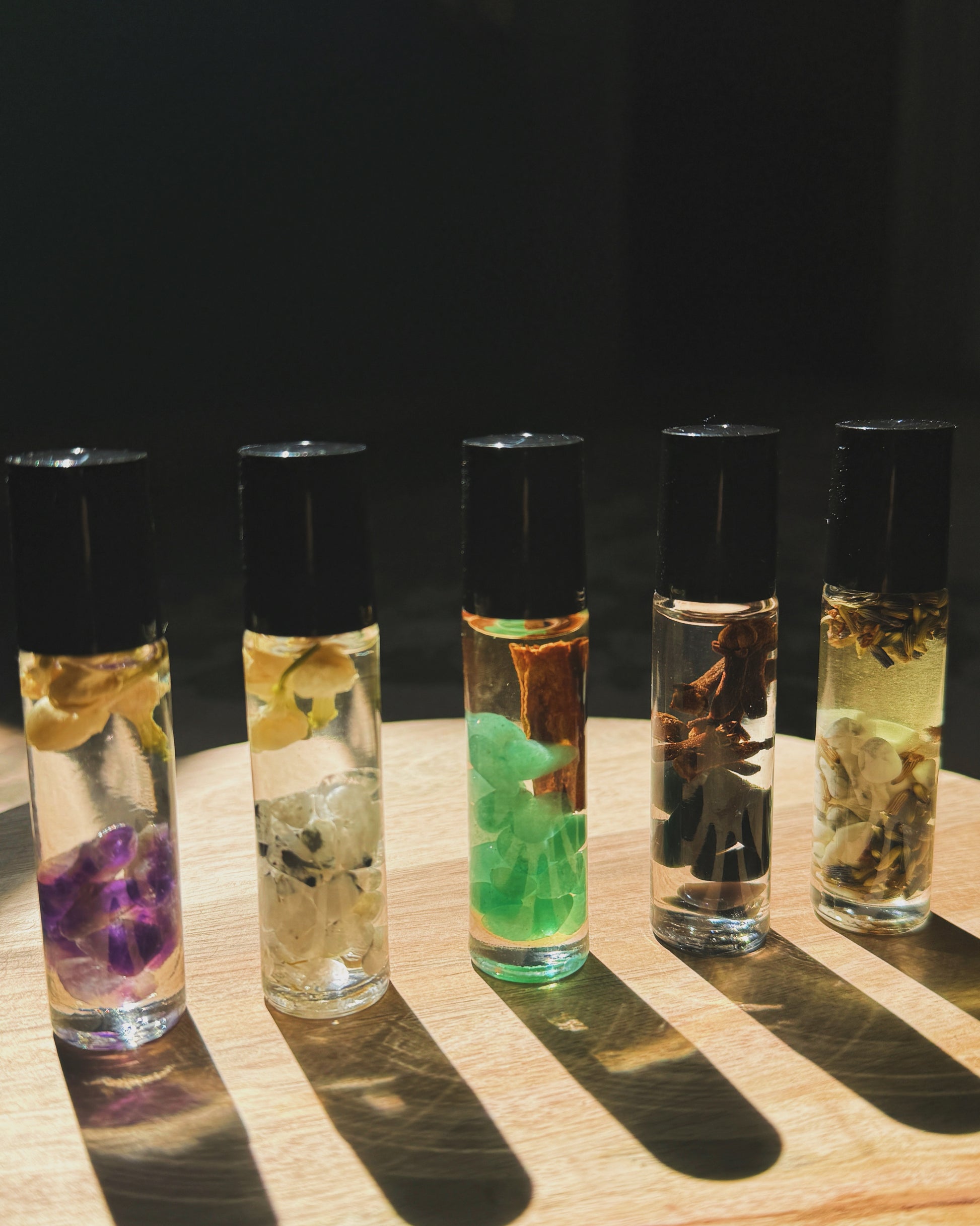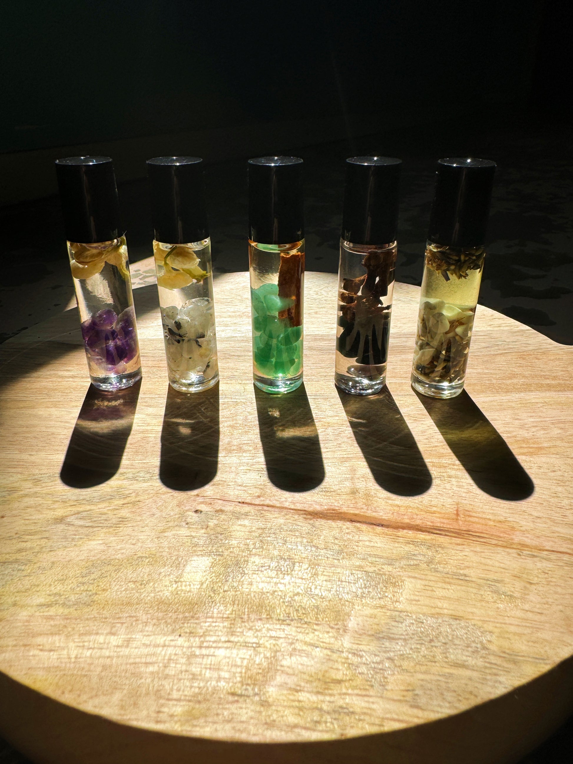 You will receive a pack of 5 different intention oils, each is a 10ml rollerball. These are great to throw in your bag so you have the oils whenever you need them! The pack includes: