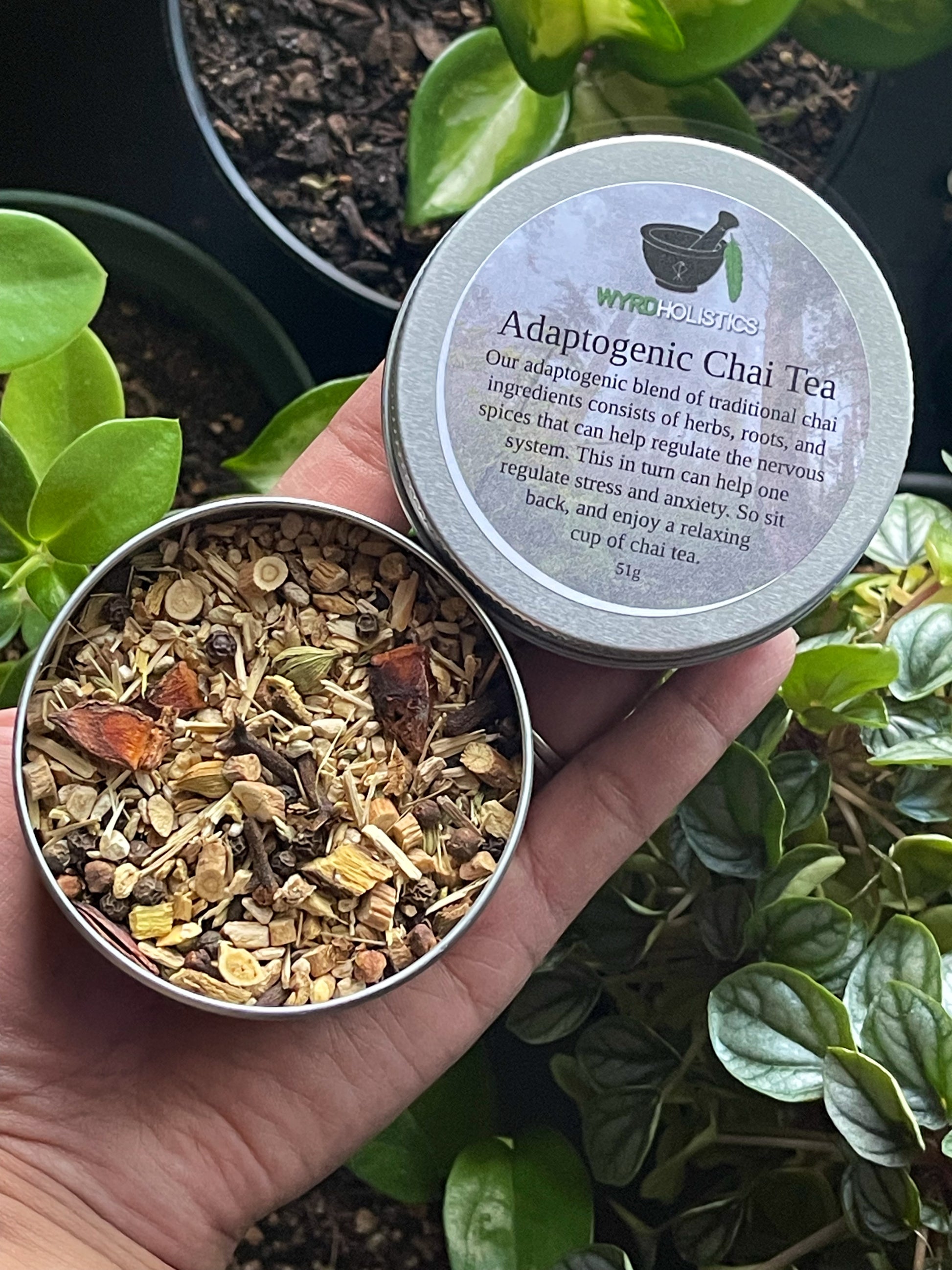 Our adaptogenic blend of tradional chai ingredients consists of herbs, roots, and spices that MAY help regulate the nervous system. This in turn MAY help one regulate stress and anxiety. So sit back and enjoy a nice cup of relaxing goodness! You will receive 1 tin.