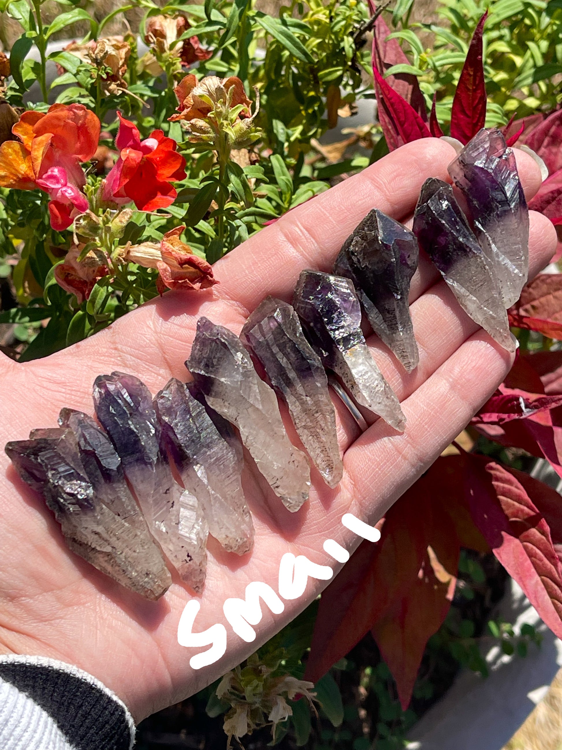 These little babies look like teeth....if Amethyst had teeth! Amethyst is a great calming crystal, i recommend it to everyone! You will receive 1 piece. The smalls are Amethyst and the Medium and Large are Black Amethyst.