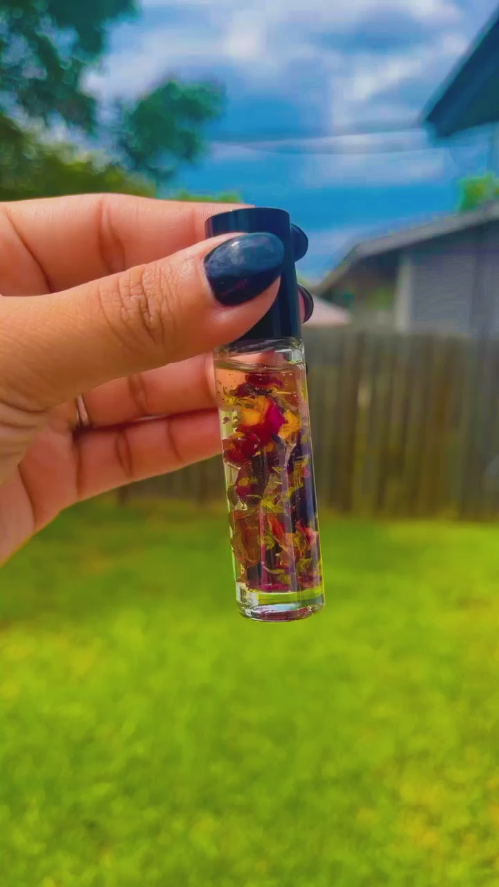 In honor of Pride month we are doing ritual oils for each of the colors on the original pride flag. For the color red we have chosen to make an attraction oil. We ritually prepared this oil with herbs, crystals, and essential oils to help you attract someone. 2 of the essential oils are natural aphrodisiacs and and some of the herbs are domination herbs. You can use this oil directly on your skin, on a candle, or on a petition. You will receive 1 rollerball.