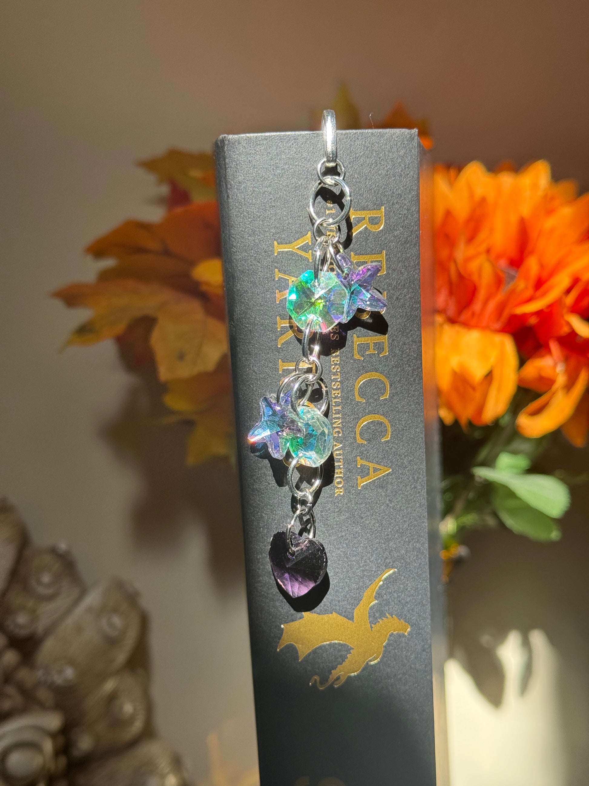 Beach Vibes represents the beach scenes in some of our favorite books! It has 2 blue and green starfish, 1 purple heart, and 2 rainbow octagons. You will get the bookmark pictured.