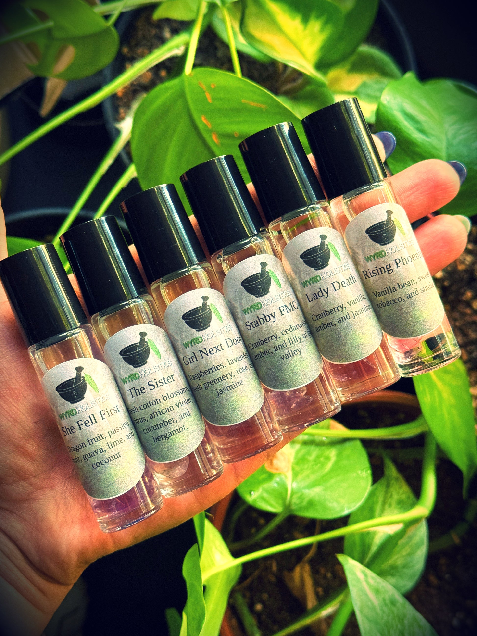Who doesn't love a good FMC trope?! We picked our favorite book girlfriend FMCs and created these oils to be used as perfume or body oil for you or your lover! They have a fractioned coconut oil base and amethyst crystal chips. Each of these have a custom blends of oils that include essential oils and high quality phthalate free fragrance oils. You will receive 1 10ml rollerball. As always, please do a patch test before using.