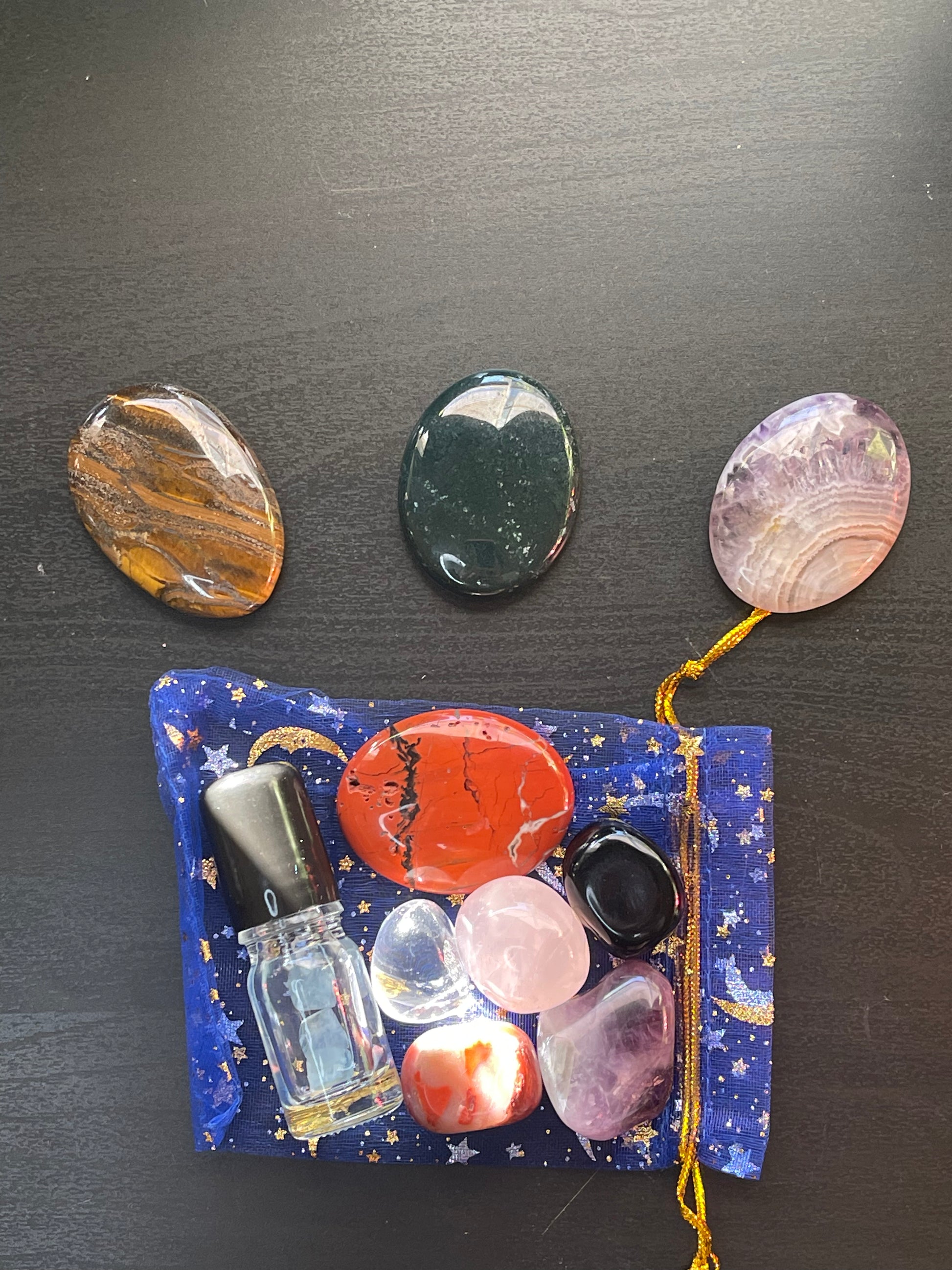 We put together this Chill Vibes Calming set for the people that struggle with anxiety. Each set is the same except for the worry stone, so you can choose the one you are drawn to. In this set you will receive: