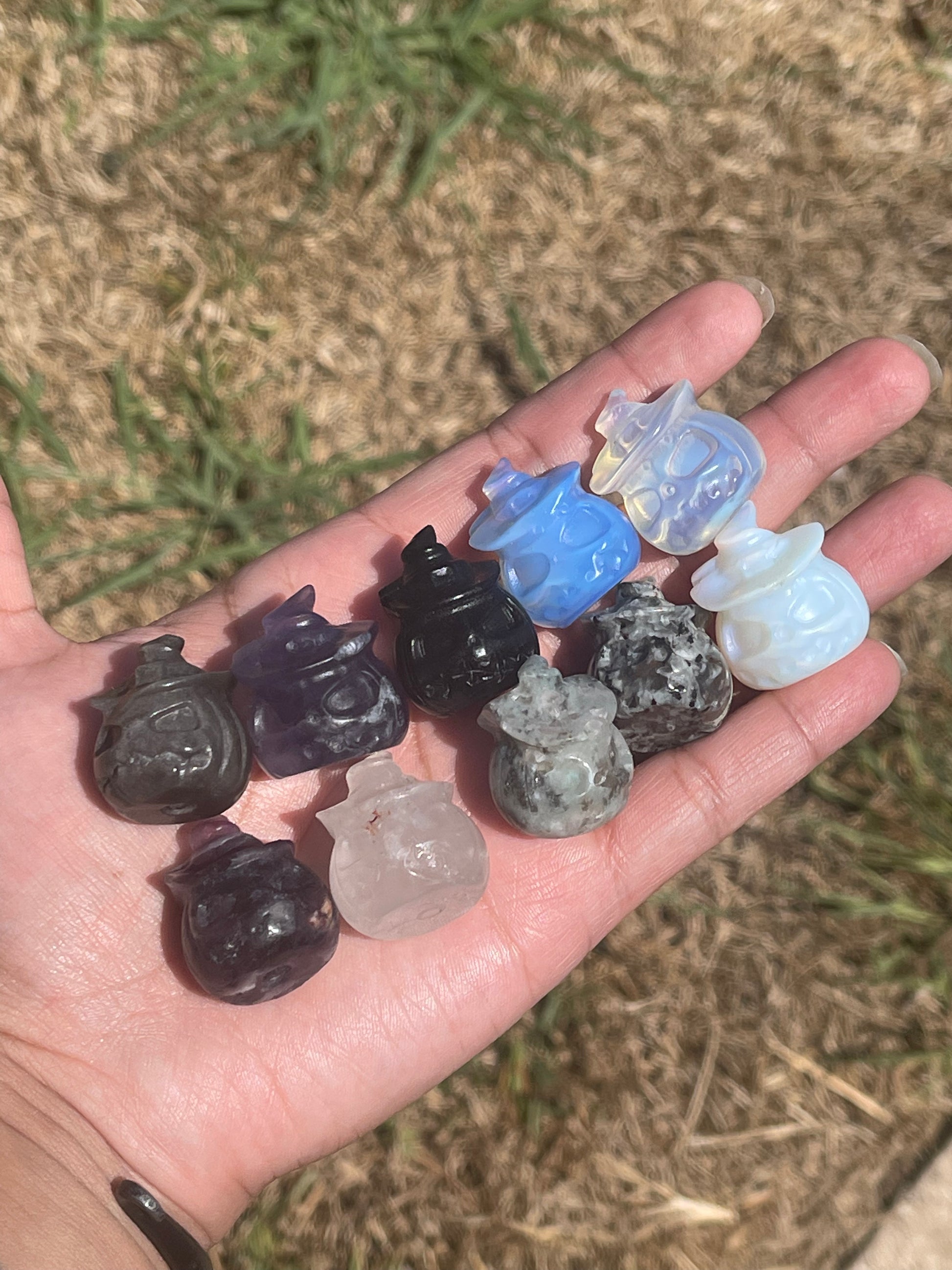 These cute little pumpkins are wearing witch hats, could it get any more adorable?! They weigh roughly 20g and are a tiny bit over an 1" tall. Choose your material!