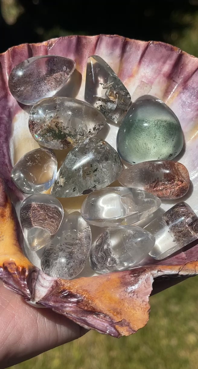 Garden Quartz, or Lodolite, connects one to their past lives. The quartz amplifies the properties of the other crystal inclusions. If you're working on healing past life trauma, we suggest this stone for you! You will recieve 1 intuitively selected free form.