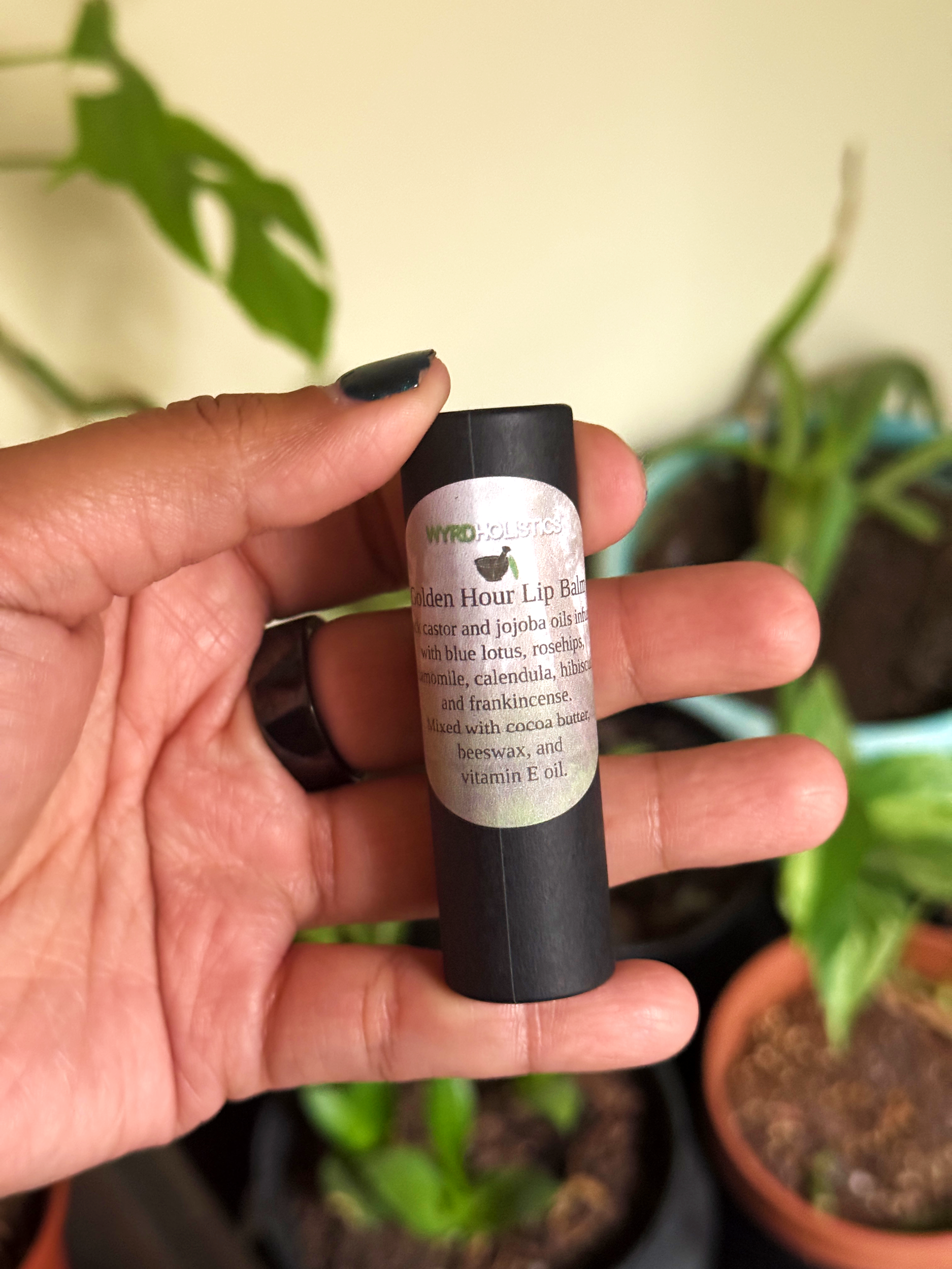 Our Golden Hour Lip Balm has all the amazing benefits and properties of our Golden Hour oil. You will receive 1 10.5g cardboard tube.