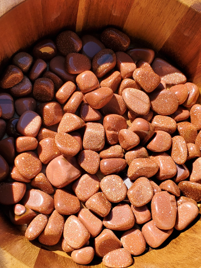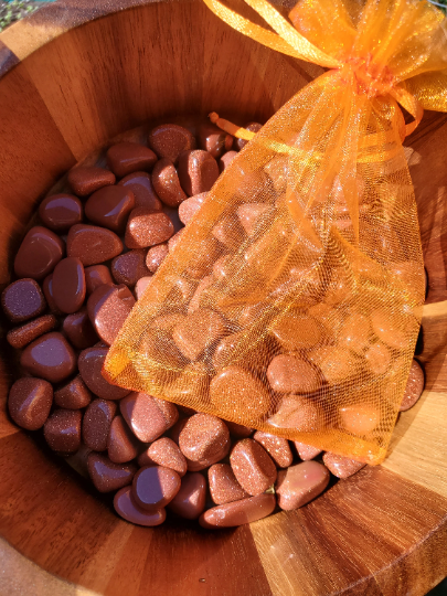 Youll receive 7 pieces of goldstone in each bag, the weight comes out to 1oz-1.2oz The pieces are anywhere from dime size to nickel size. Perfect stocking stuffer for your crystal loving person!