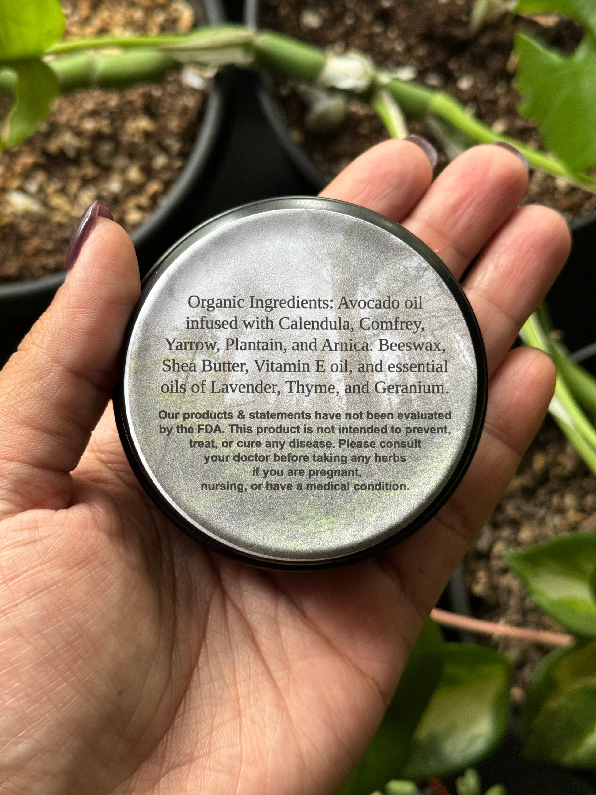 Healers Touch is great because not only can you use it on wounds, you can also use it on tattoos! We infused avocado oil with healing herbs and added some healing essential oils. This balm contains herbs that are antimicrobial, antiseptic, anti-inflammatory, and anti-bacterial. With all these amazing herbs and oils this salve may disinfect, soothe, and speed healing. We made this amazing salve in a 1oz container so its small enough to pack on any trip!