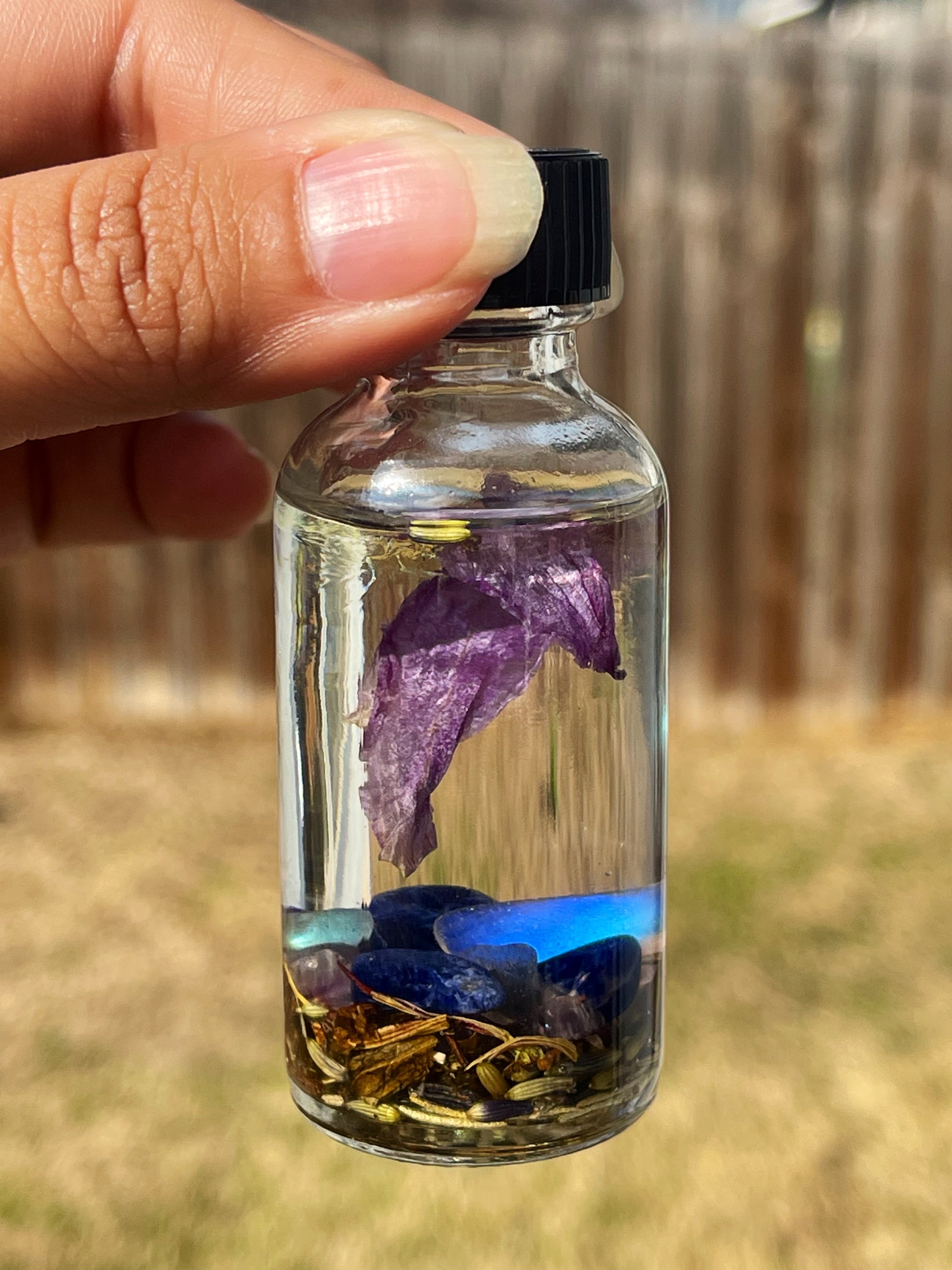 We ritually prepared this oil to aid in opening the crown and third eye chakras to receive messages from spirit. You can use this oil on your self while doing divination or dream work, or you can use it to anoint a candle. One of our favorite ways to use this oil is in a ritual bath, we also have a High Priestess Bath Soak. If you like to enjoy a cup of tea, check out our High Priestess herbal tea. This beautiful oil has some of our favorite herbs likes Mugwort and Blue Lotus, as well as some of our favorite crystals like Labradorite and Amethyst. Scented with essential oils of Cedarwood Atlas, Rose, and Sandalwood.