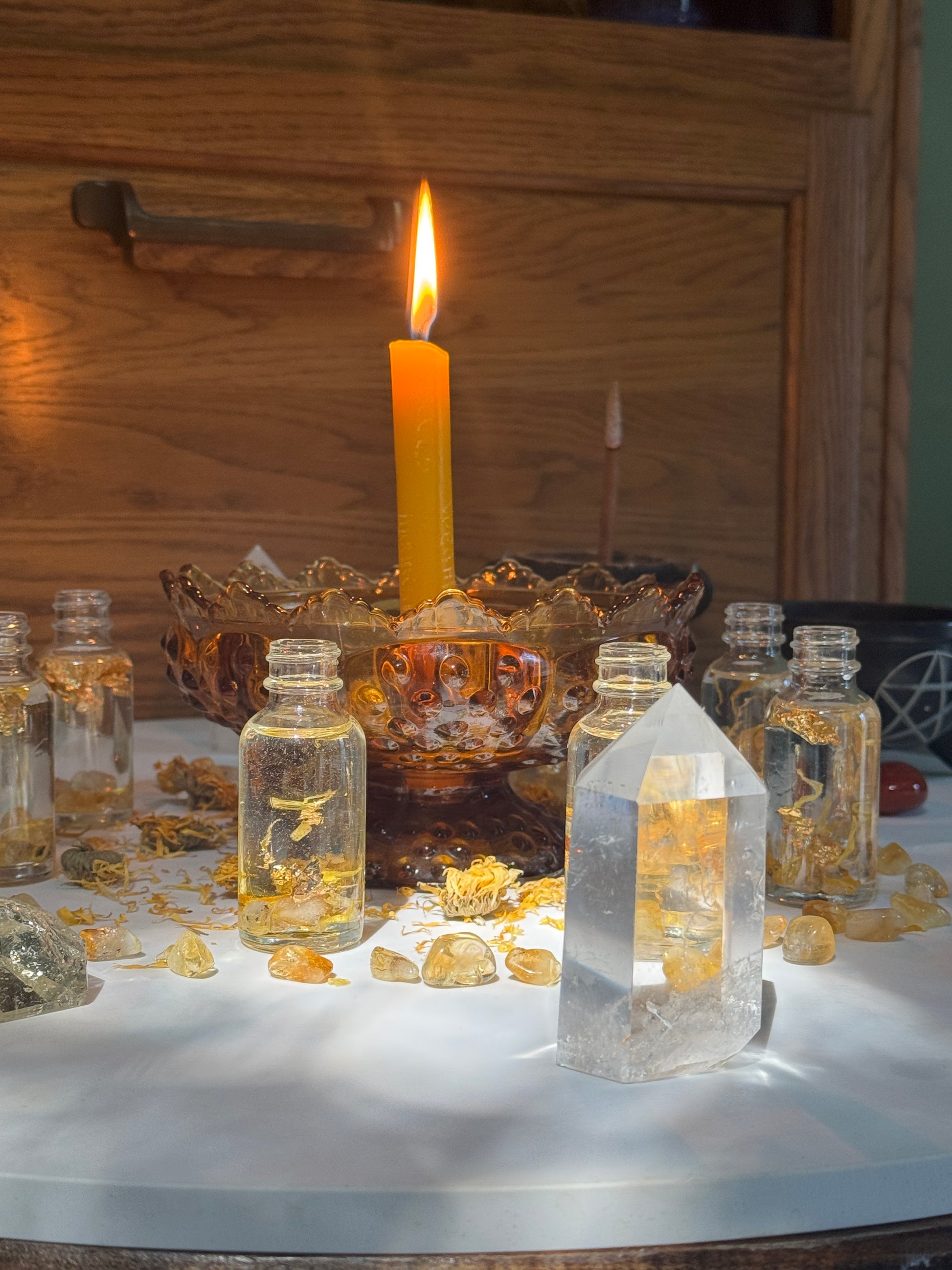 Ritually created during the Lions Gate Portal opening! This beautiful manifestation oil can be used on your parchment, ritual oils, and yourself! We harnessed leo and solar energies to ritually infuse this small batch of oils. Once these are gone, there is no more! Grab yours now! You will receive 1 bottle.