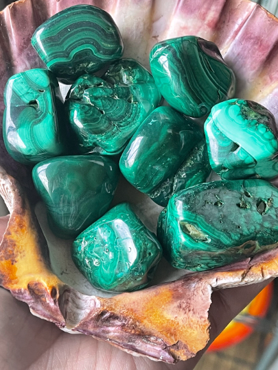 Malachite is the stone of transition. It helps reveal and heal emotional pain, then absorbs it into itself. For this reason we recommend cleansing this stone often. It is mainly tied to the heart chakra but can align them all. Malachite also helps bring in good fortune, for this purpose we recommend pairing it with citrine and green aventurine. You will receive 1 stone unless a different quantity is selected.