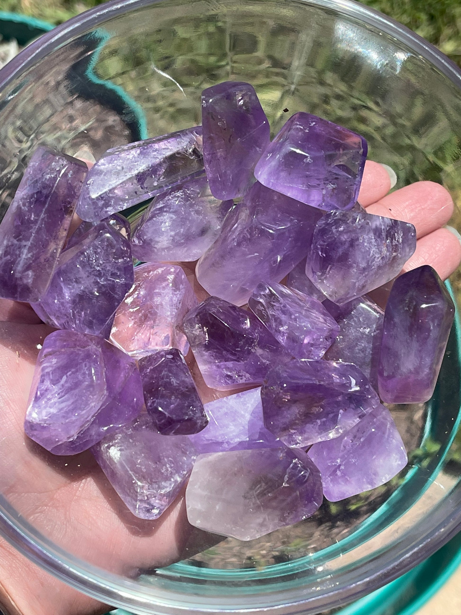 Amethyst is good for spiritual awareness, the crown chakra, inner healing, stress relief. Put a piece of Amethyst under your pillow for a good nights sleep as well as aid in spiritual dreams. You will receive 1 intuitively picked piece. These weigh .4oz - 1.1oz or 12g - 31g.