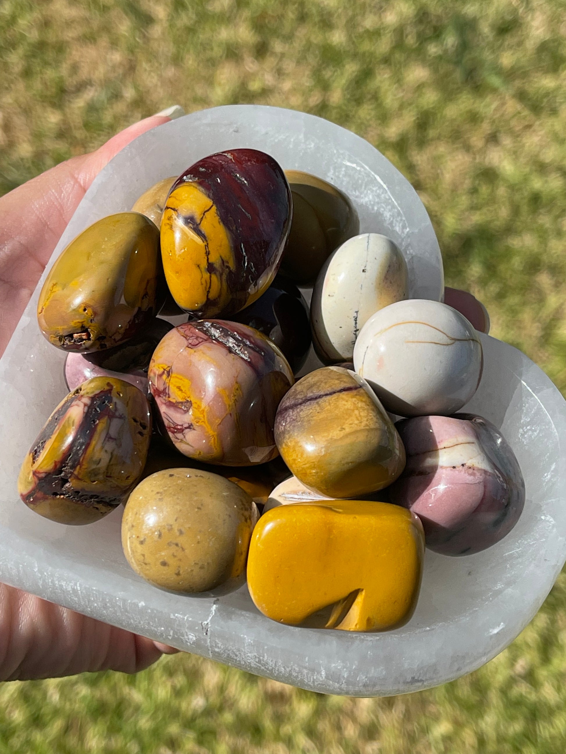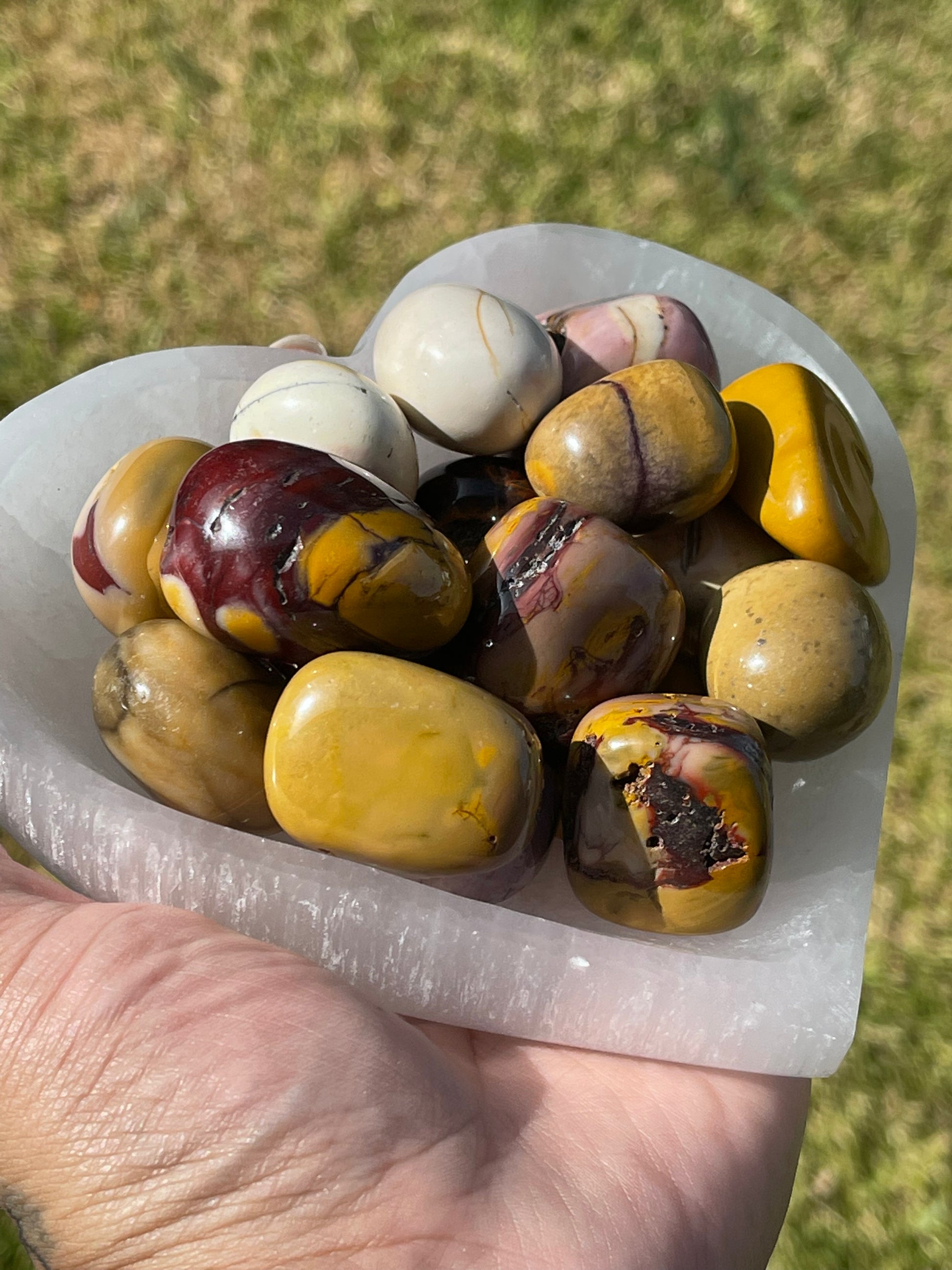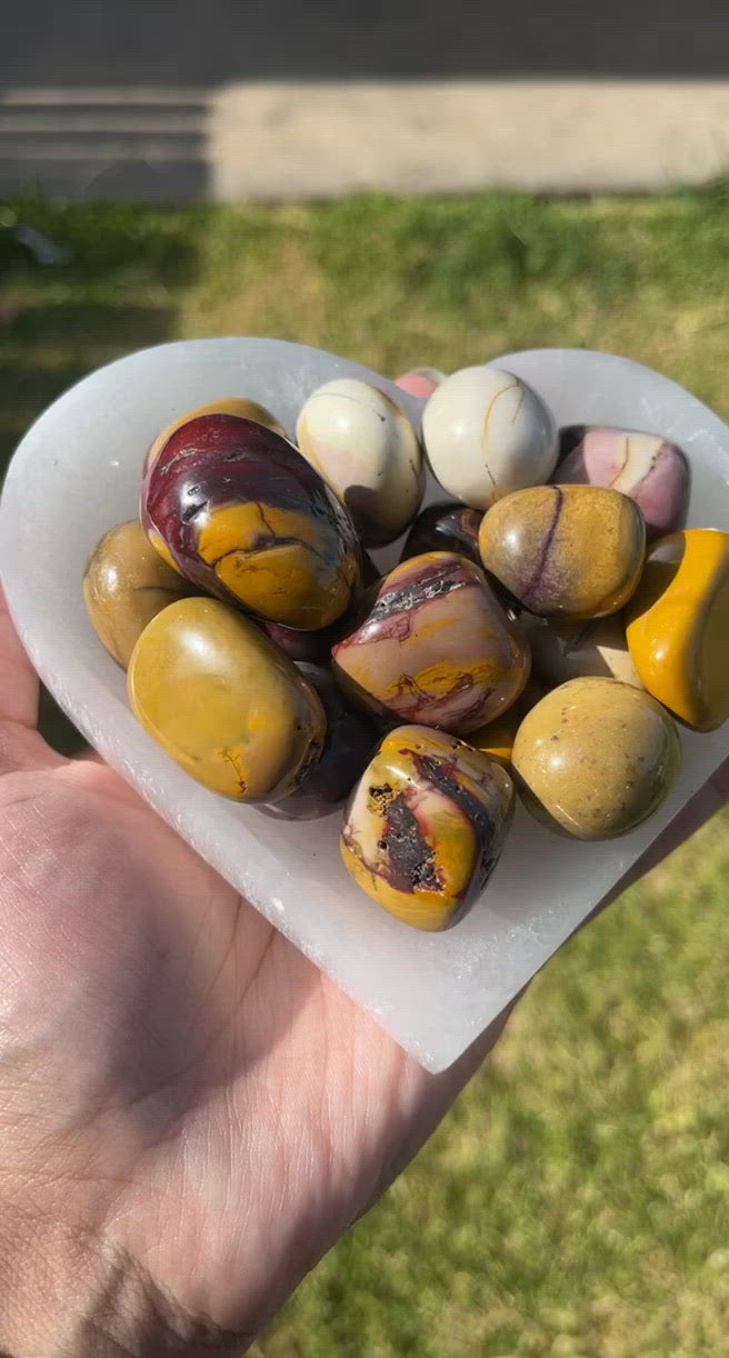 Mookaite jasper helps connect to the Earth element and aids in increasing self-confidence, self worth, and to realize your full potential. It helps to increase motivation and maintain calmness. It is also known for aiding in ancestral healing by resolving inherited patterns and healing ancestral trauma. You will receive 1 tumbles.