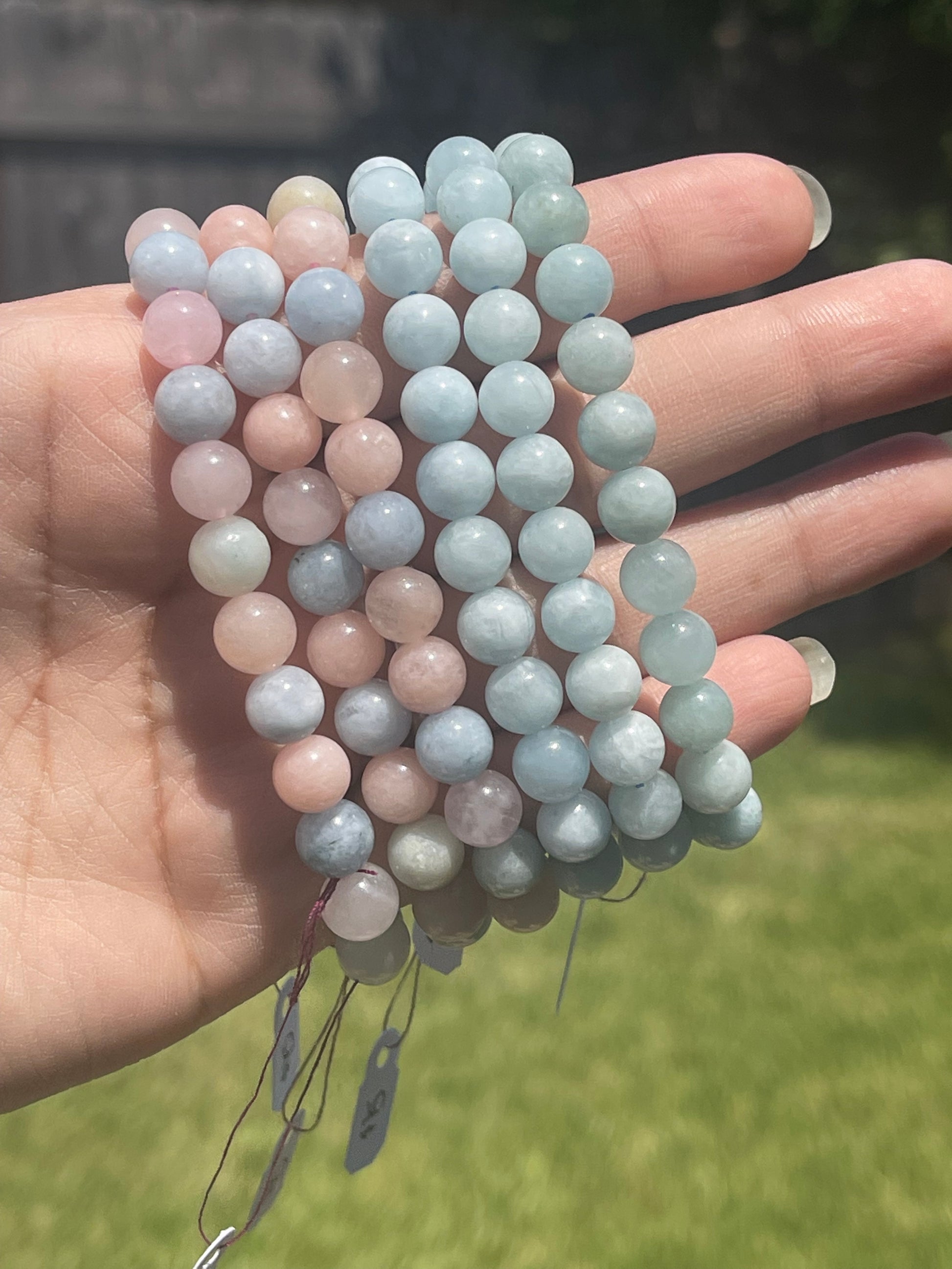 Morganite is tied to the heart chakra. It can aid in emotional healing, divine love, and acceptance. It is known to help one align with divine love and allows you to see the beauty in all things. You will receive 1 bracelet.
