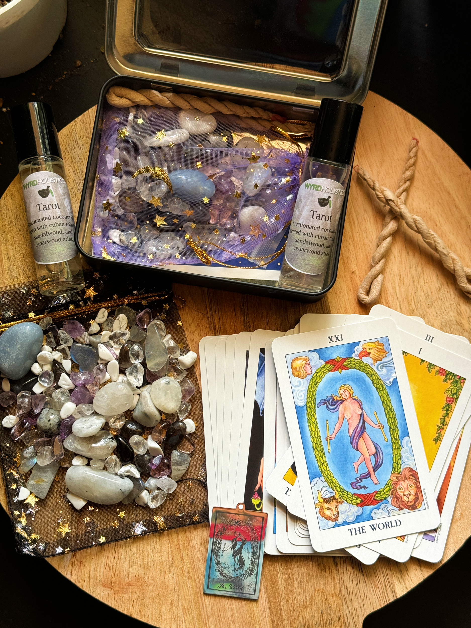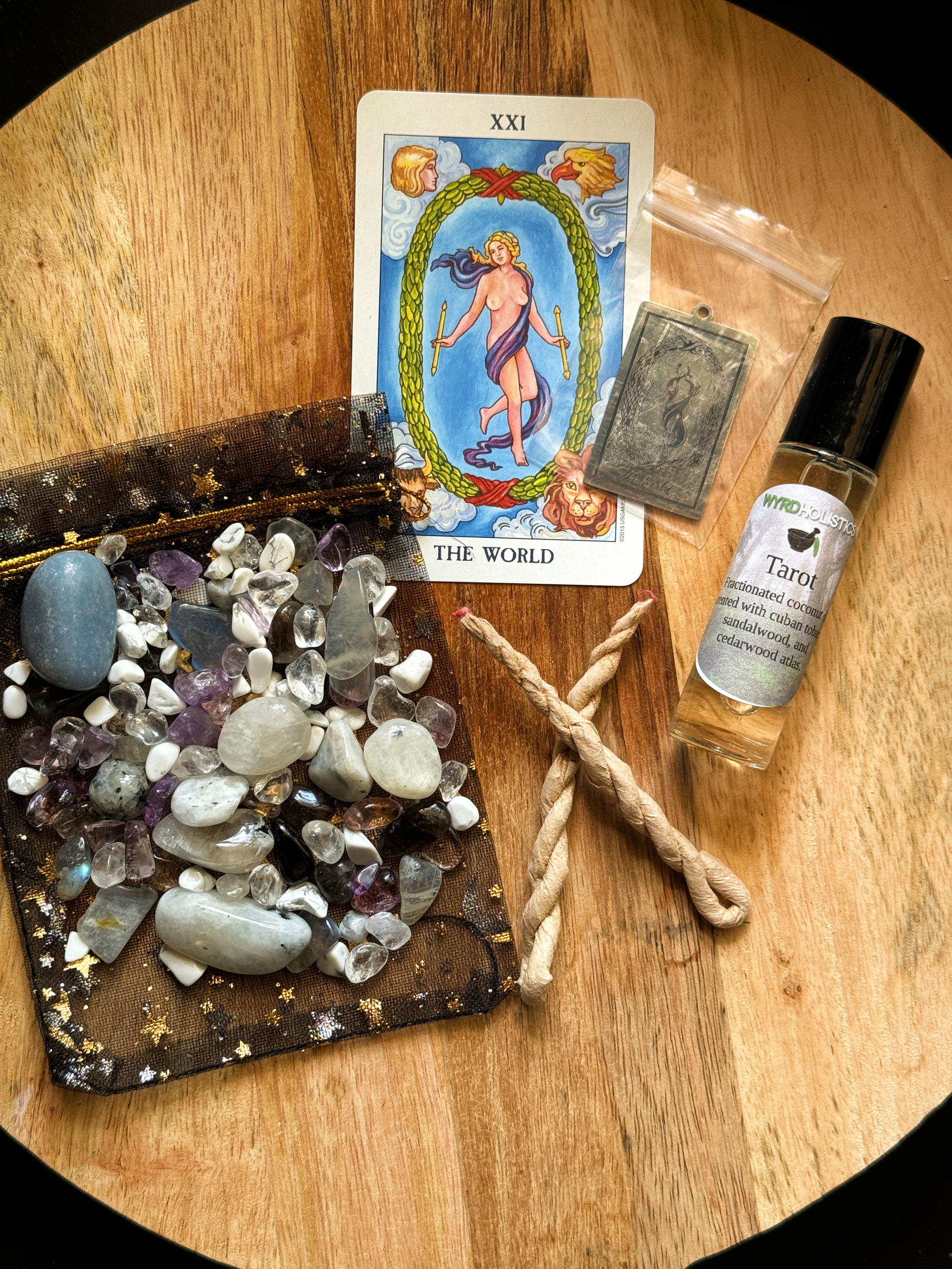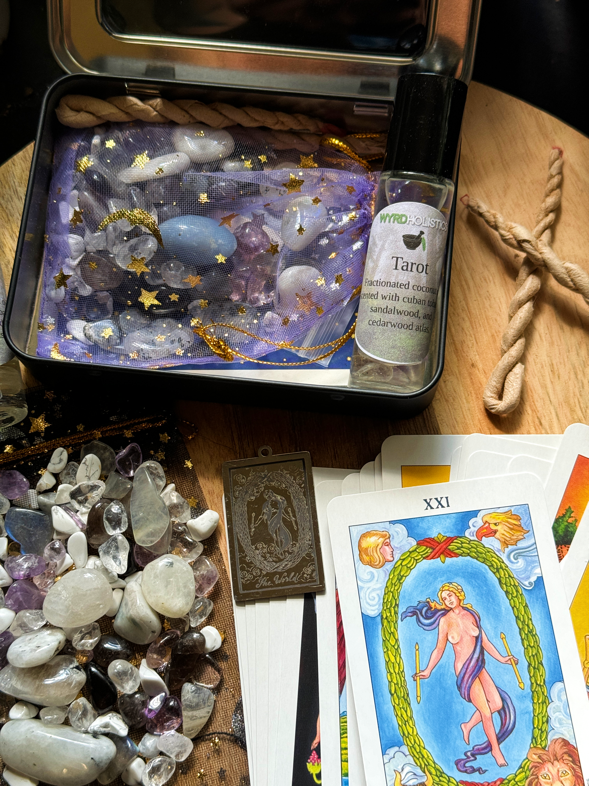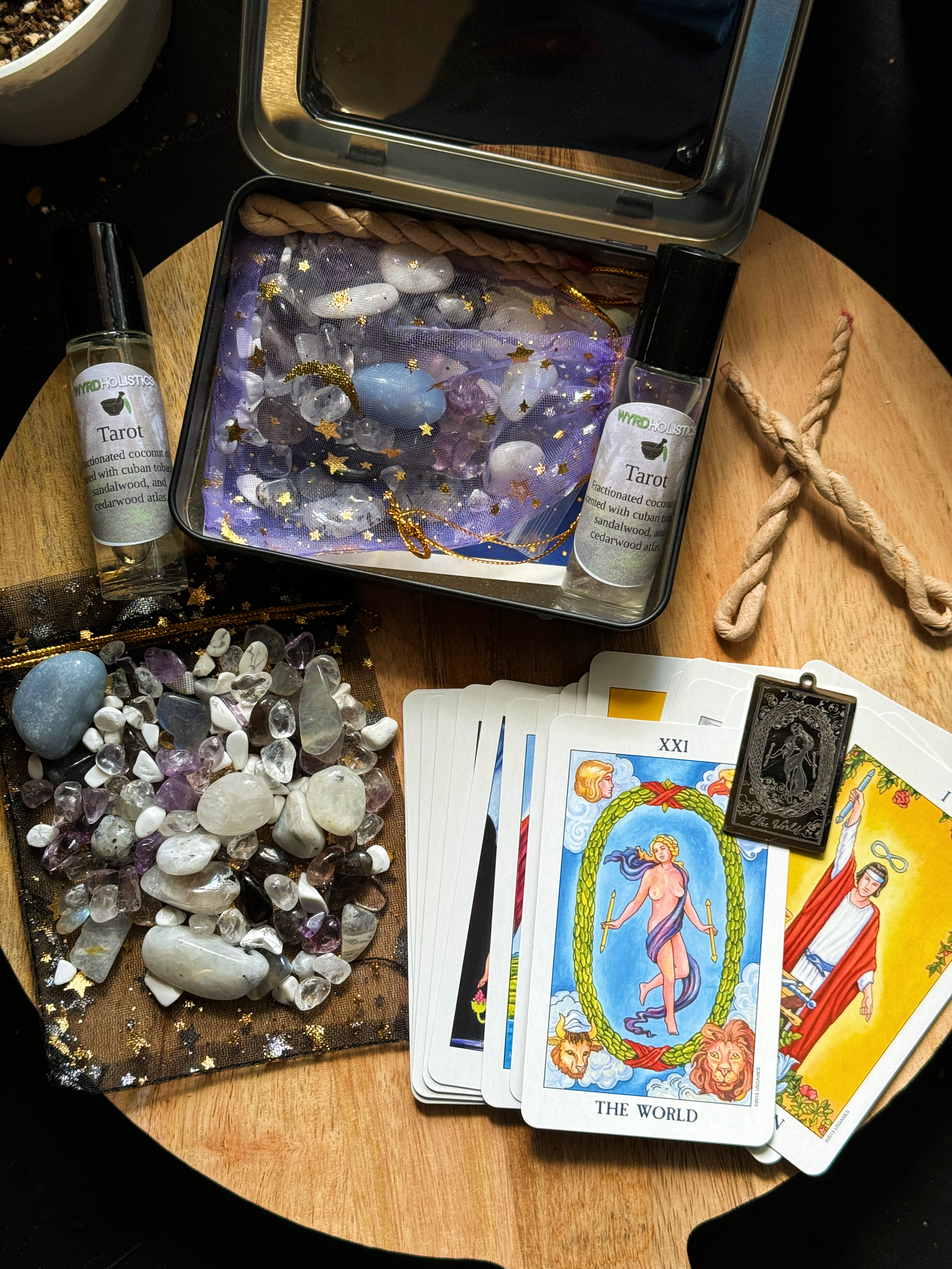 - 1 Tarot rollerball scented with sandalwood, cedarwood atlas, and cuban tobacco infused with super sever chips