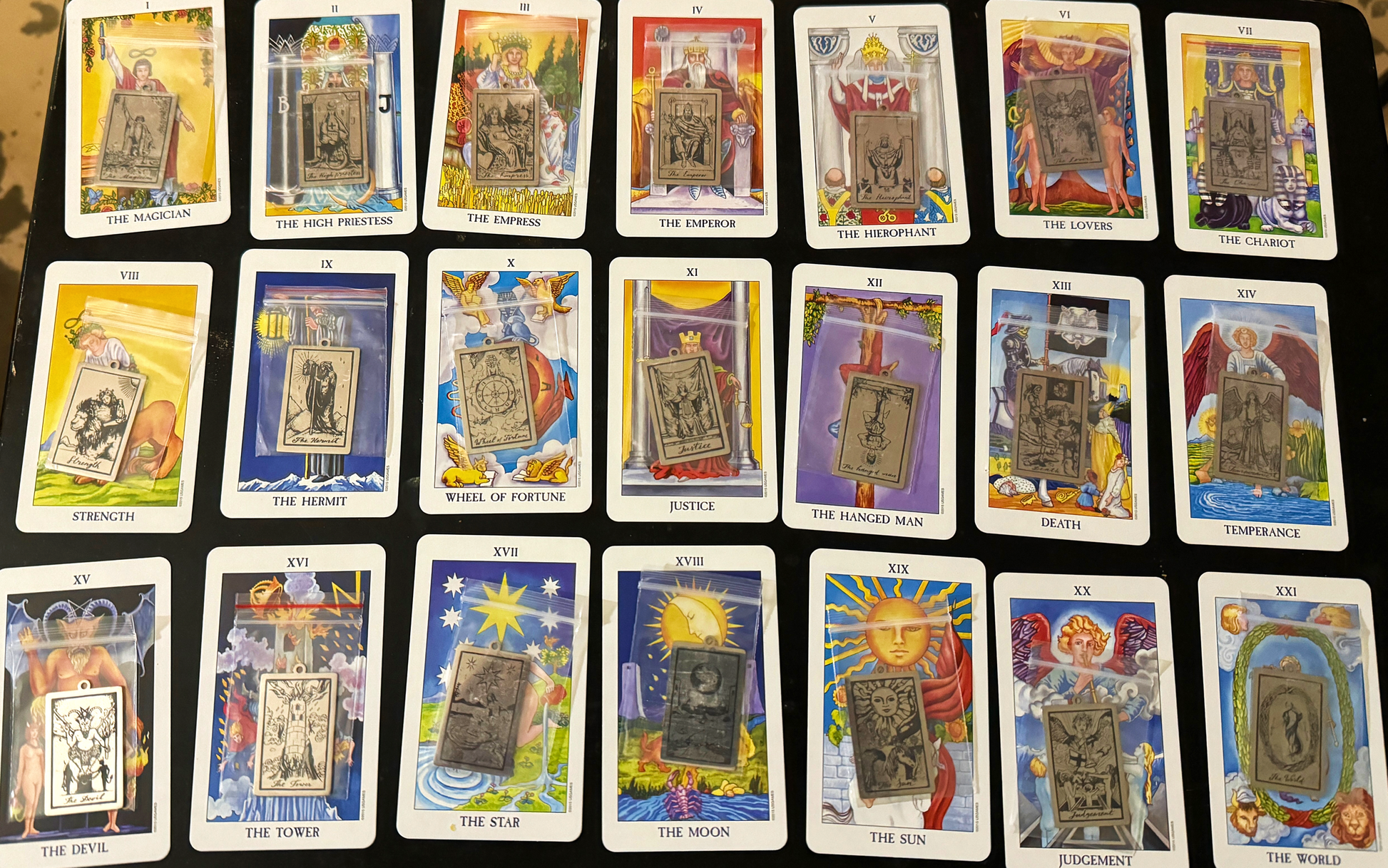 The Major Arcana in tarot are main points in ones journey. They are the most important cards in the deck and can give guidance on their own. For these bundles we shuffled the major arcana and split them into these tins face down so you cant see which card you get until you open the tin. Each bundle includes: