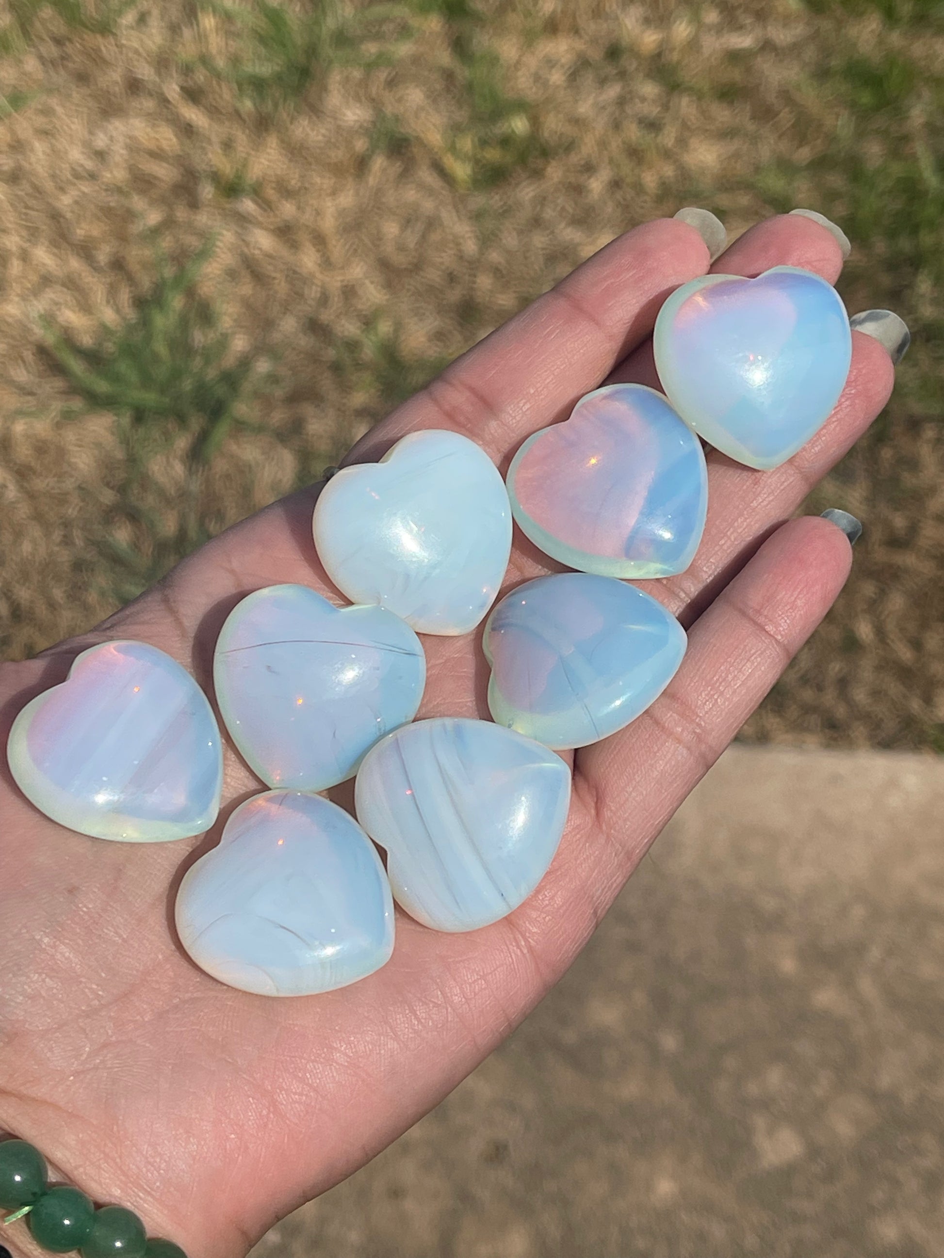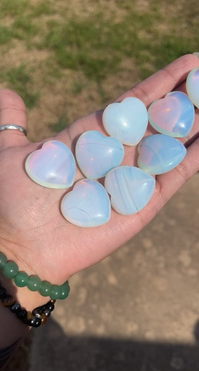 Opalite is a man made crystal, but its still magical! Its aids in stabilizing moods, meditation, eases transitions in life, and success.