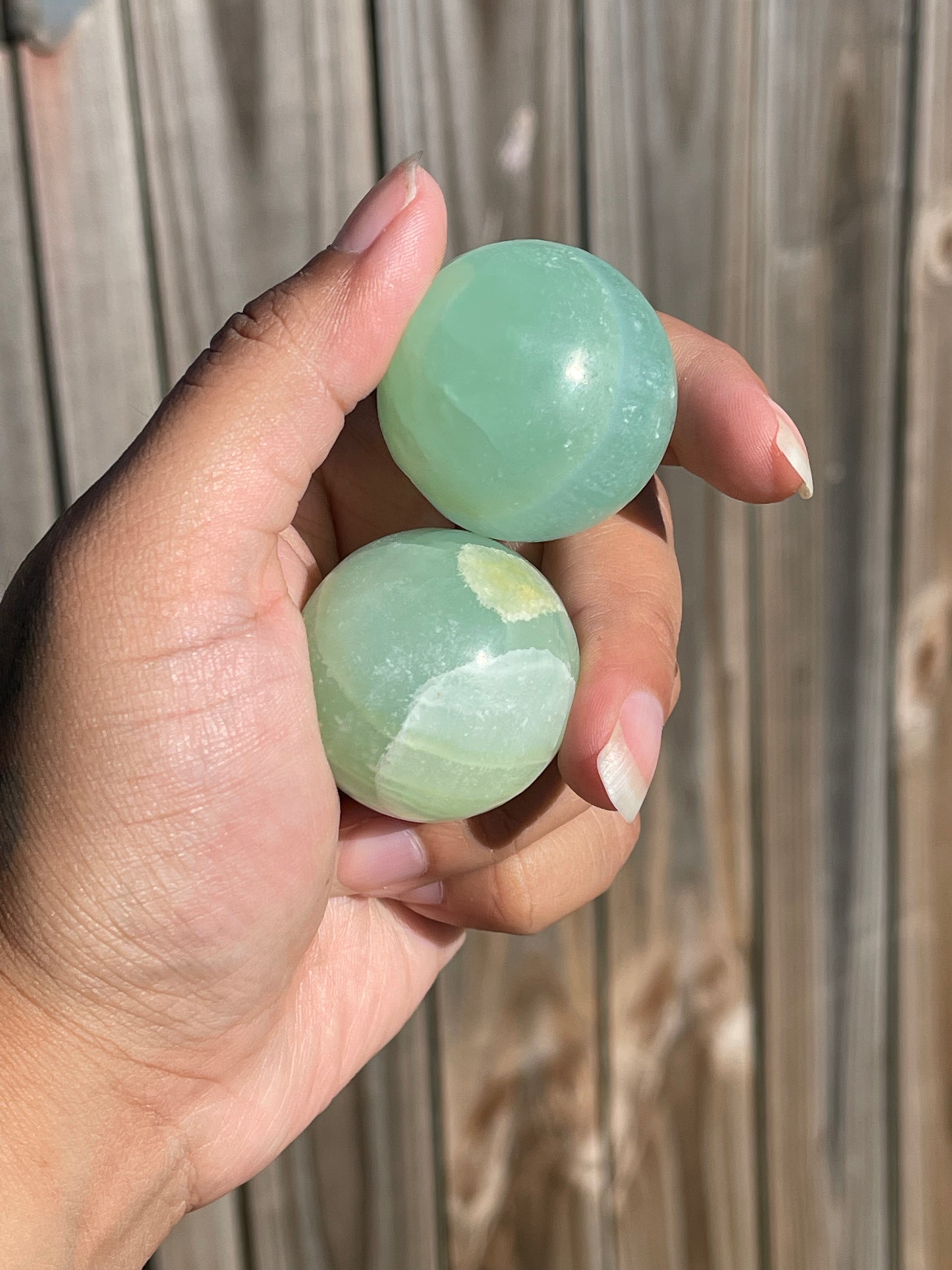 Ollie Garcia The sphere I received seems similar to the planet Venus; I was surprised by the color and it has become one of my absolute favorite pieces. These are so beautiful, smooth, and the Medium size was great for me. I love mine and I love how no two are exactly the same!