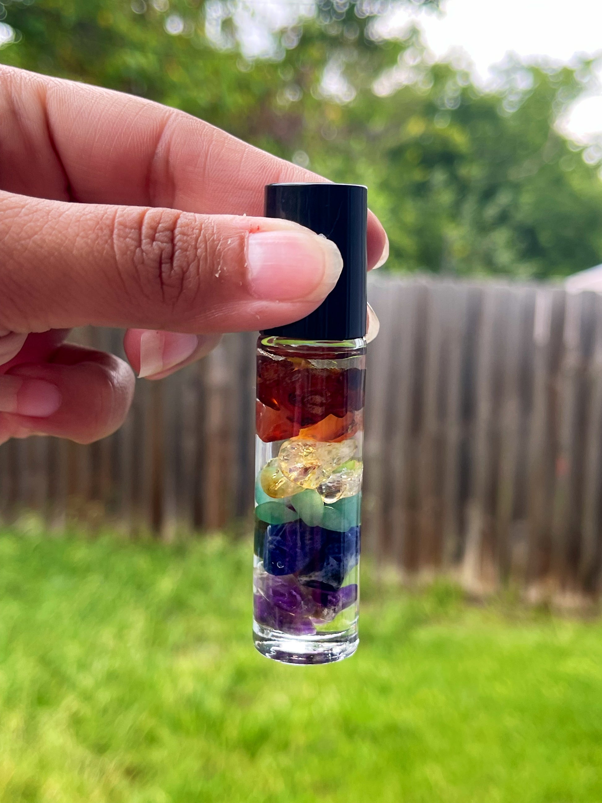 We created this beautiful rollerball for Pride! we included crystal chips to represent the different colors of the original Pride flag. We used fractionated coconut oil and added Chamomile, Palo Santo, and Sandalwood essential oils. You will receive one 10ml rollerball.