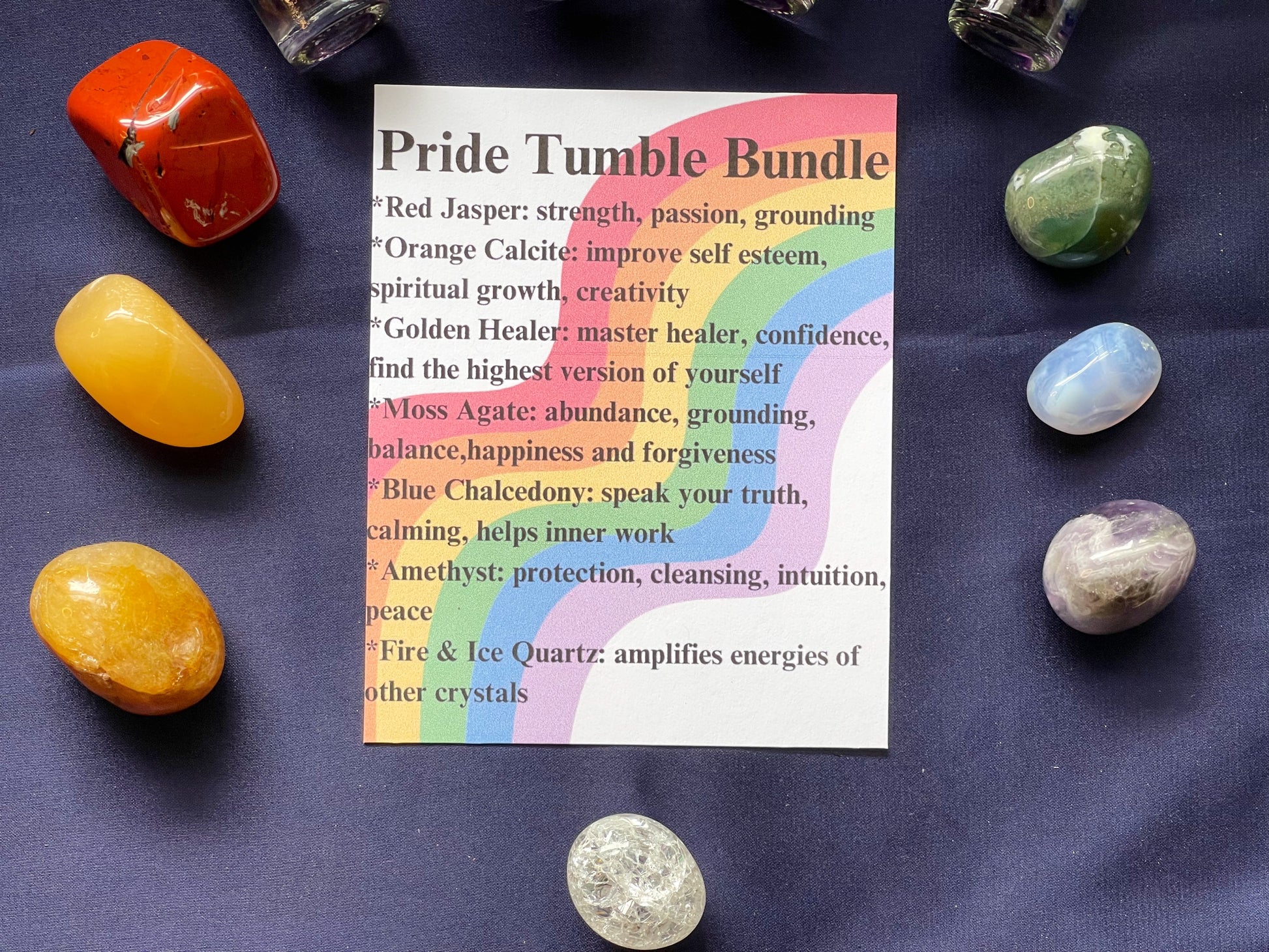 We put this bundle together to celebrate PRIDE! We included one crystal to represent each color of the original rainbow pride flag. You will receive 1 of each: