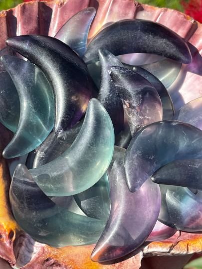 Fluorite is great for opening your path to your spiritual abilities. It draws out negative energy and stress, and also stimulates memory. Its ties to the heart, throat, and third eye chakras. The Moon shape, in my opinion, is tied to intuition. We will intuitively pick one for you!!