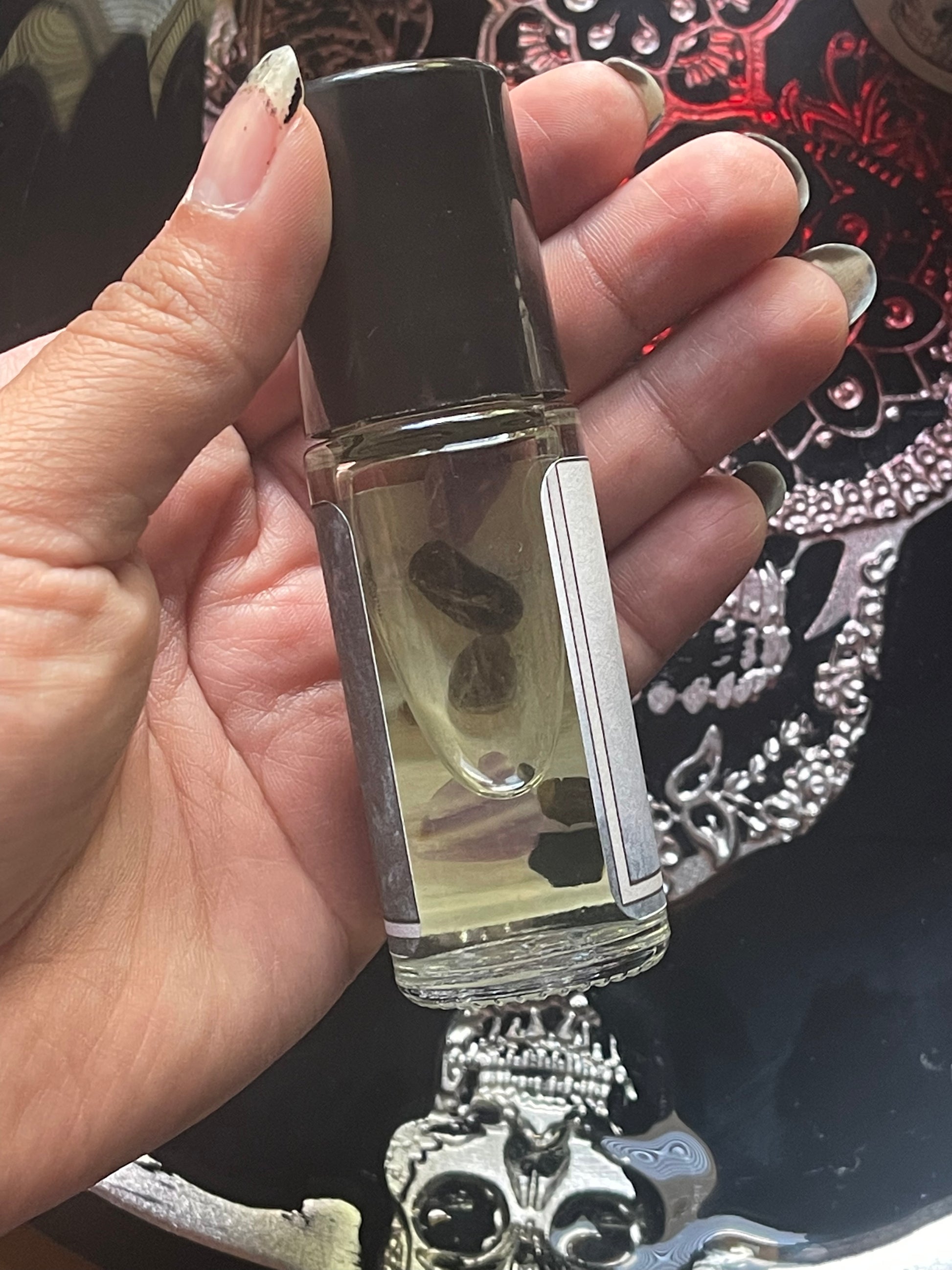 When we created Séance Room we put ourselves back in the 19th century when seances were the thing to do. We pictured walking into an old school parlor and sitting in leather chairs surrounding a wooden table. We felt the heat from the candles on the table and inhaled the room. This is how we came to create the Séance Room rollerball. It has notes of leather, patchouli, and candles that have just been blown out. We also added crystals we would use. Amethyst for calming energy, black tourmaline to shield you from negative energy, and smokey quartz to act as a cloak. You will receive 1 rollerball.