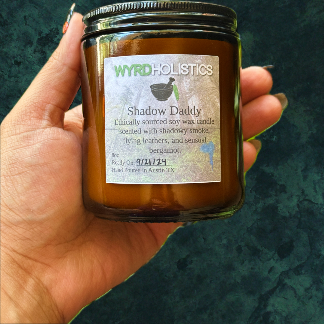 Shadow Daddy is scented with shadowy smoke, flying leathers, and sensual bergamot. You will receive 1 wood wick candle.
