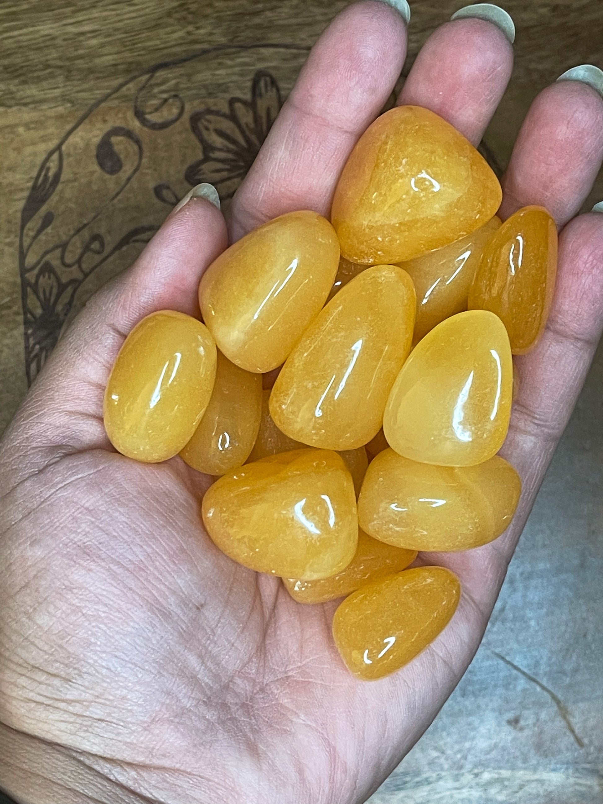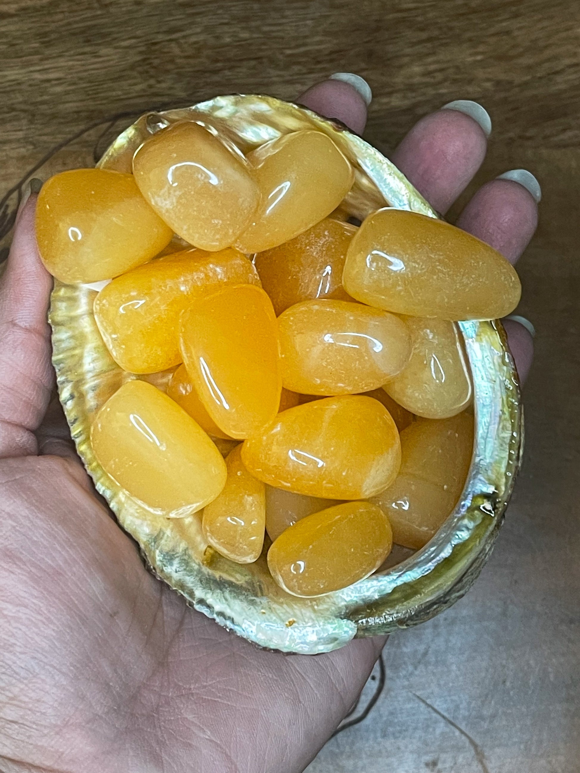 Orange Calcite is associated with the sacral chakra. It quickens spiritual development, increases motivation, boosts confidence, and is an energy amplifier. You will receive 1 tumbled stone.