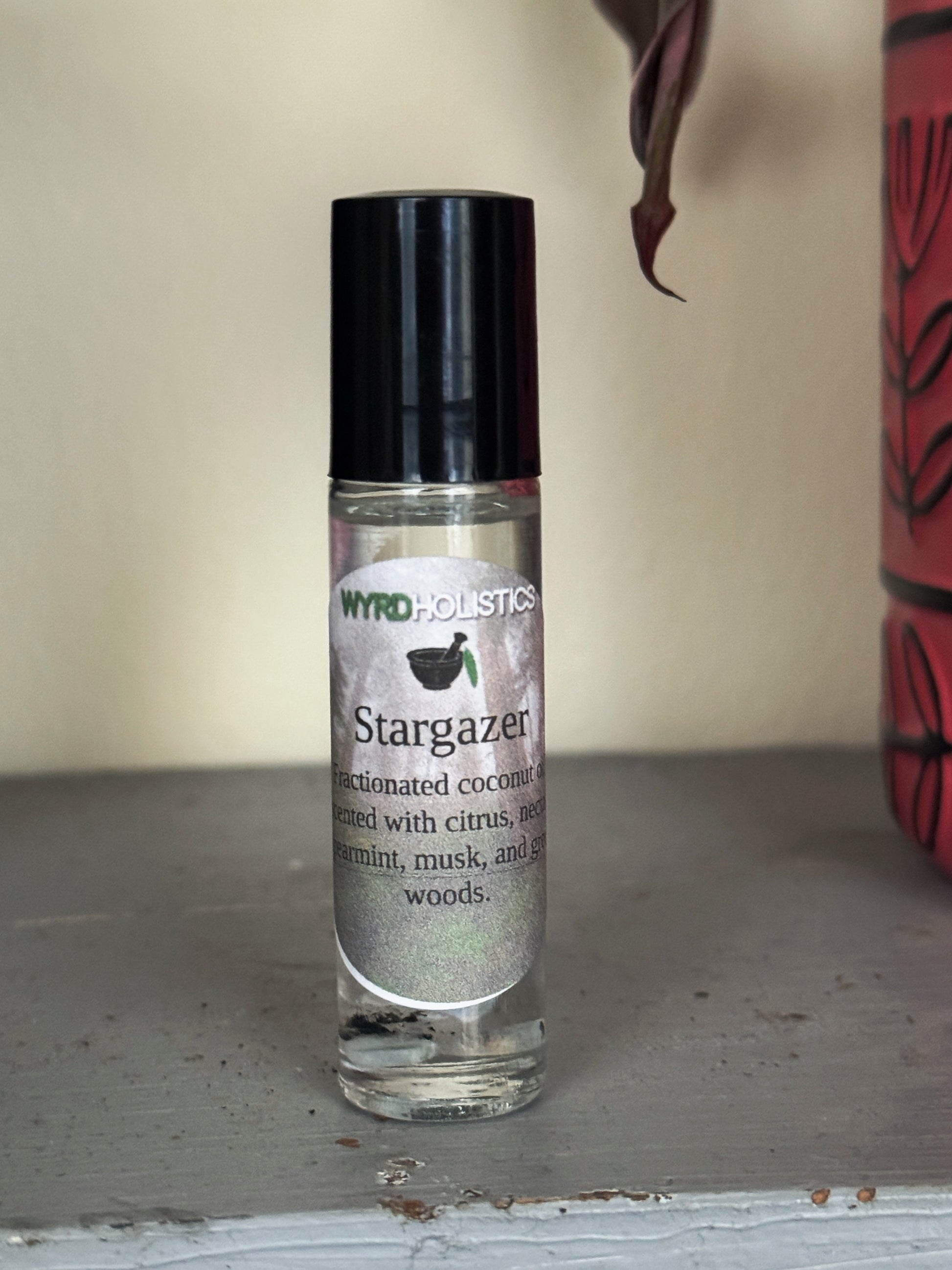 Stargazer was created specifically from a scene in Acotar when Feyre & Rhysand are watching the "shooting stars". Though I didnt read the full series this scene stuck in my head. It is scented with citrus, nectar, spearmint, musk, and green woods. You will receive 1 10ml rollerball. Shake well before each use.