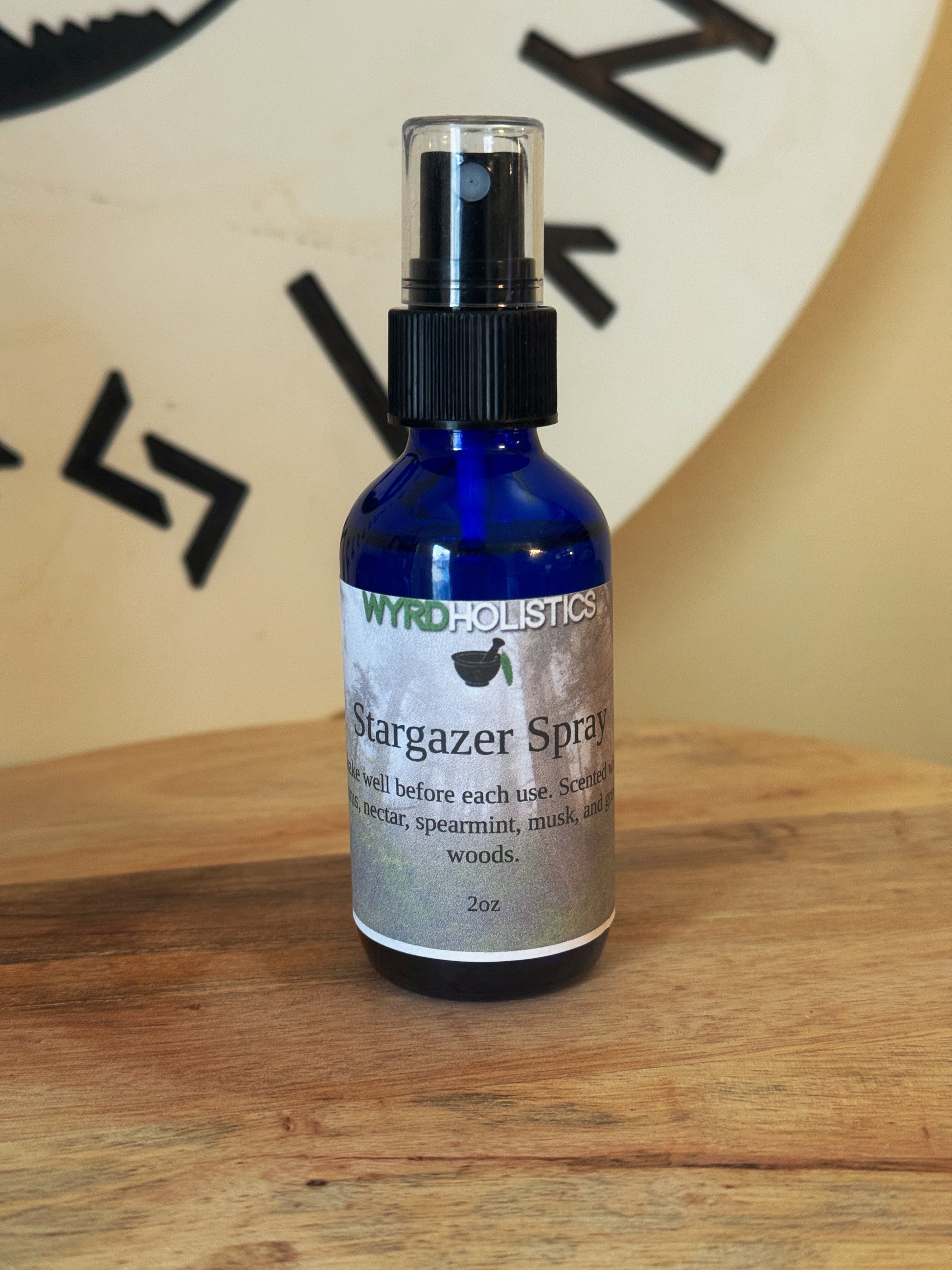 Stargazer is scented with citrus, nectar, spearmint, musk, and green woods. You will receive 1 2oz spray bottle.