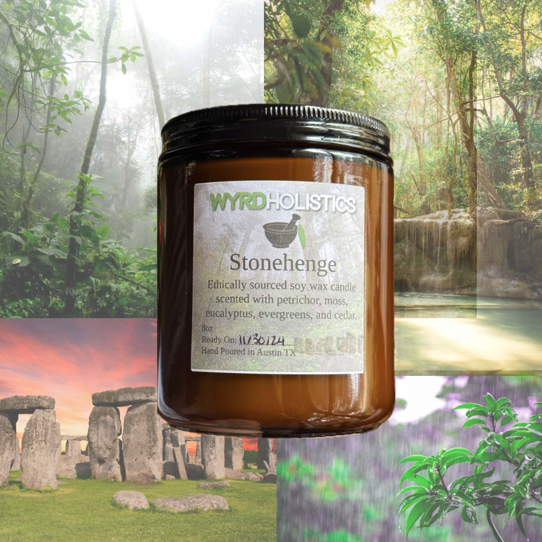 Stonehenge is scented with petrichor, moss, eucalyptus, evergreens, and cedar. You will receive 1 wood wick candle.