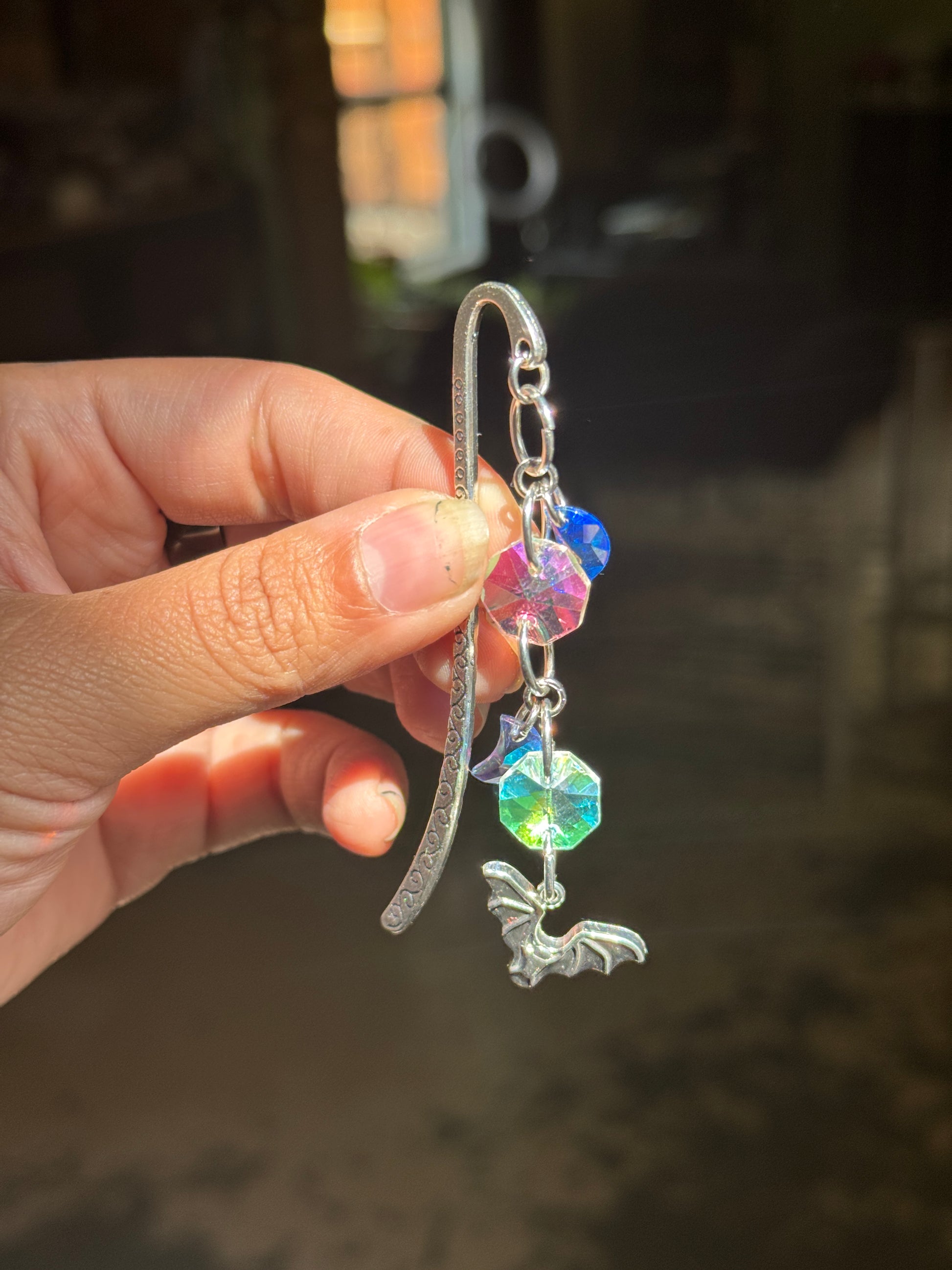 The Night Court has a bat for the bat boys we love, a sapphire crescent moon, and dark blue moon, and 2 rainbow octagons. You will get the bookmark pictured.