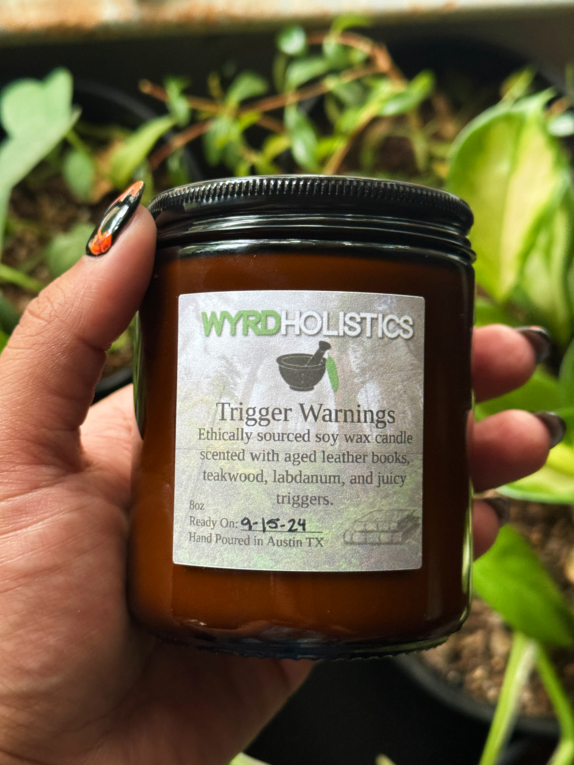 Trigger warnings is scented with aged leather books, teakwood, labdanum, and juicy triggers. You will receive 1 wood wick candle.