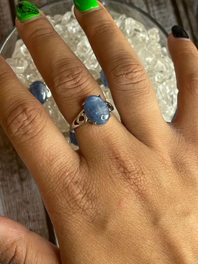 White Bronze Rings Blue Lace Agate Labradorite Blue Kyanite Moonstone