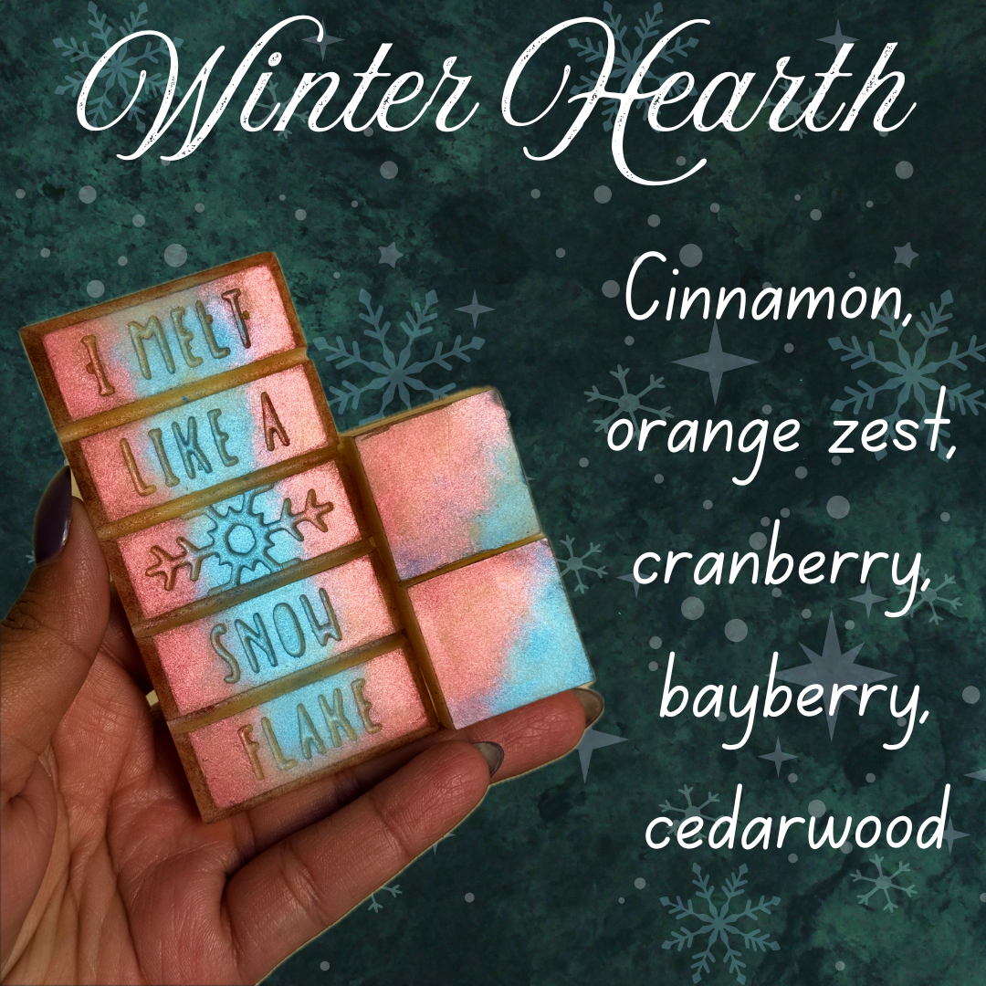 Winter Hearth is scented with cinnamon, orange zest, cranberry, bayberry, and cedarwood.