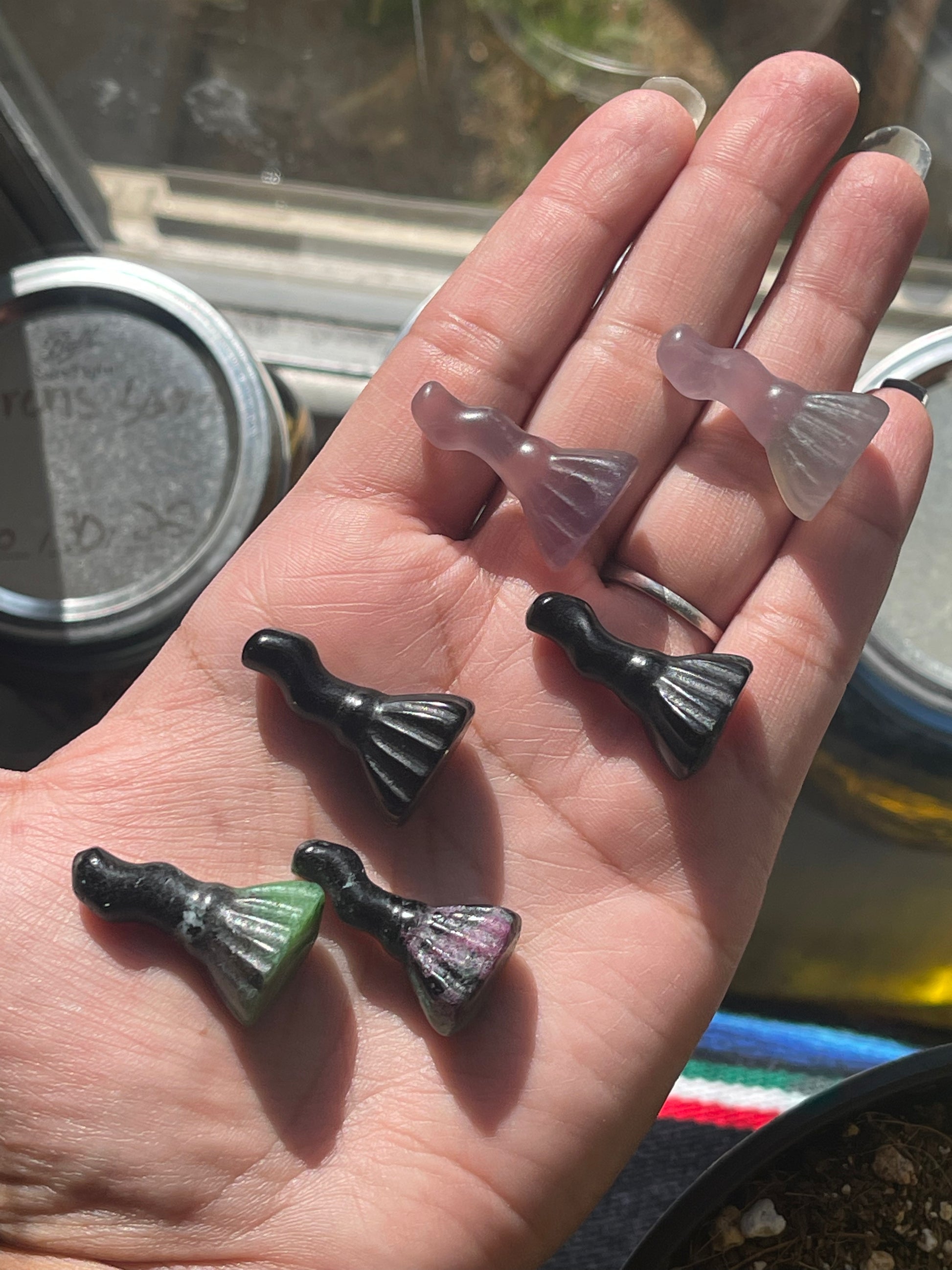 Witch's Brooms all stand on their own! These cute little brooms will be great on your altars or shelves. They are roughly 1.25" tall.